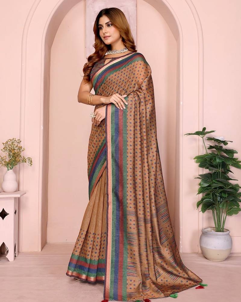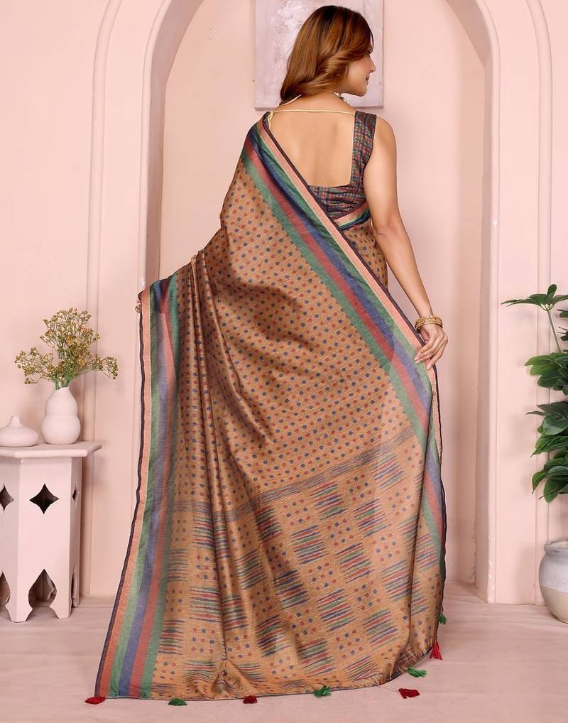 | Product Name | Brown Printed Art Silk Designer Pallu Saree | |