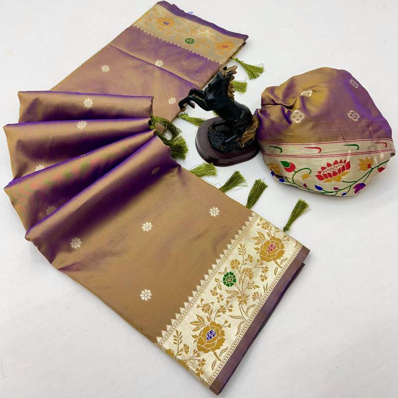 | Product Name | Brown Soft Silk Paithani Saree With Floral Zari Border & Lotus Pallu | |