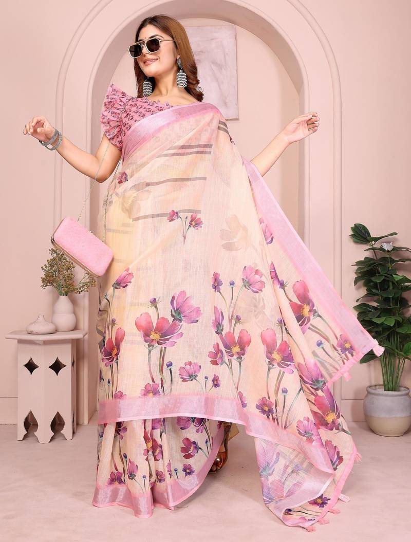 Product Name | Cream Printed Designer Pallu Linen Saree | |