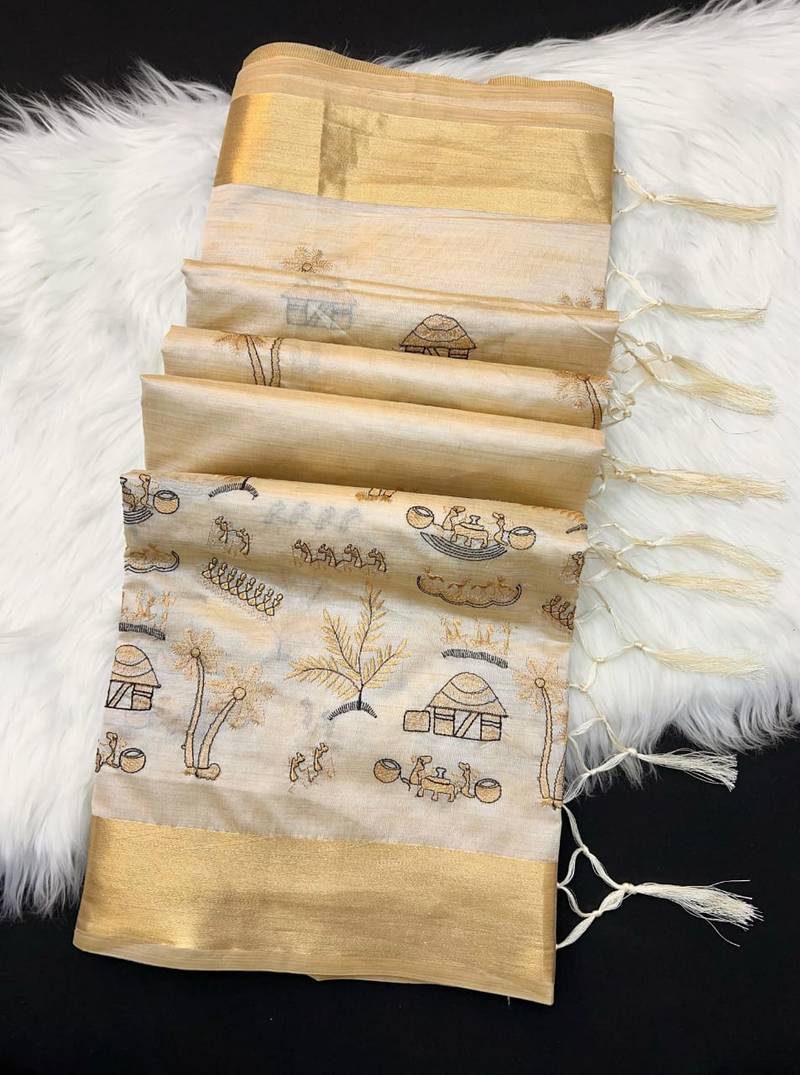 | Product Name | Cream Tussar Silk Saree With Kalamkari Design & Embroidery Work | |