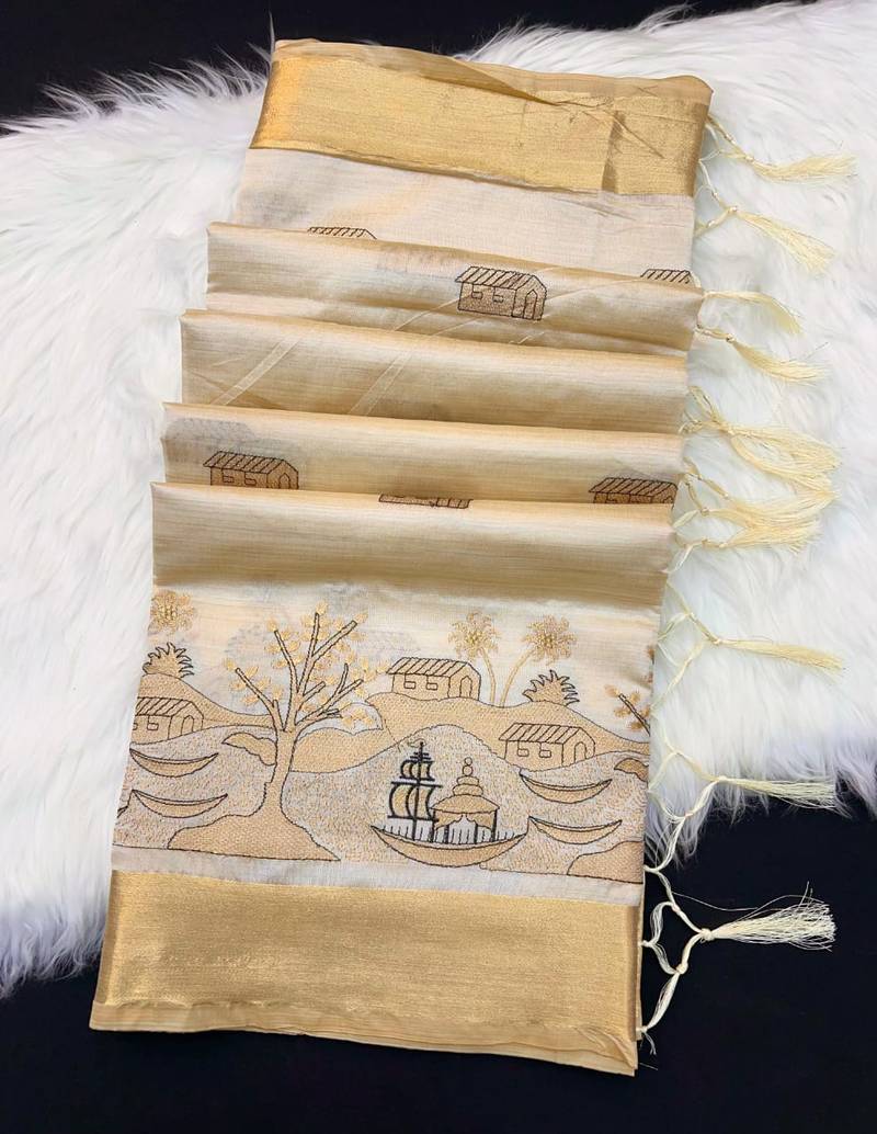 | Product Name | Cream Tussar Silk Saree With Kalamkari Design & Embroidery Work | |