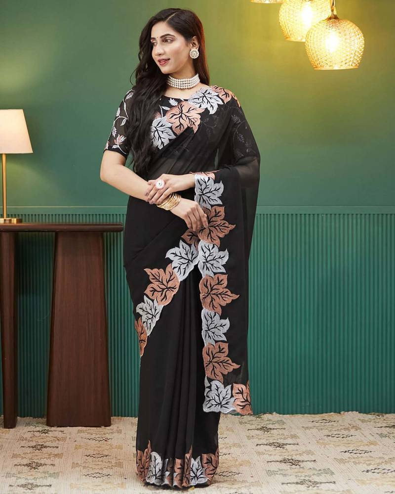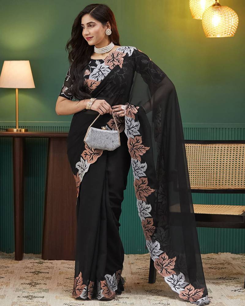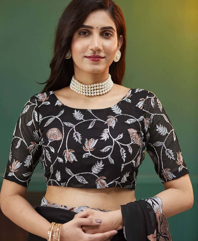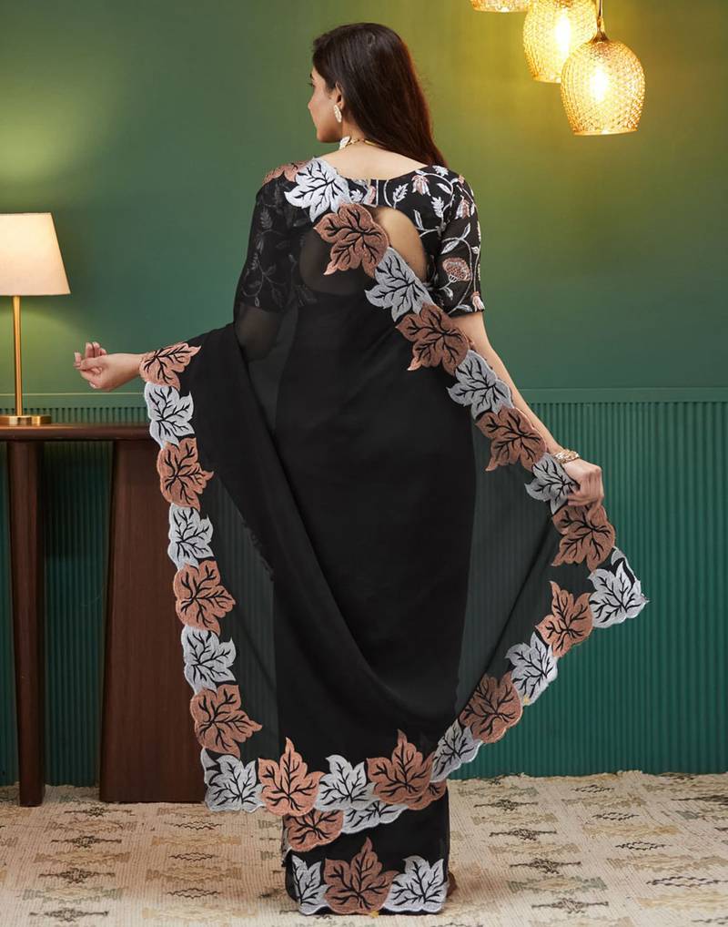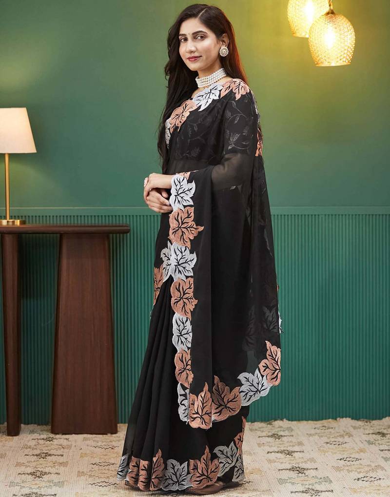 Product Name | Ethnic Motifs Embroidered Georgette Saree In Black | |