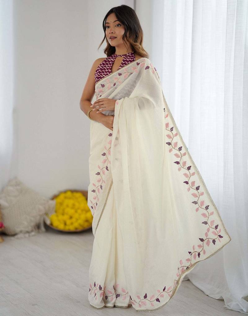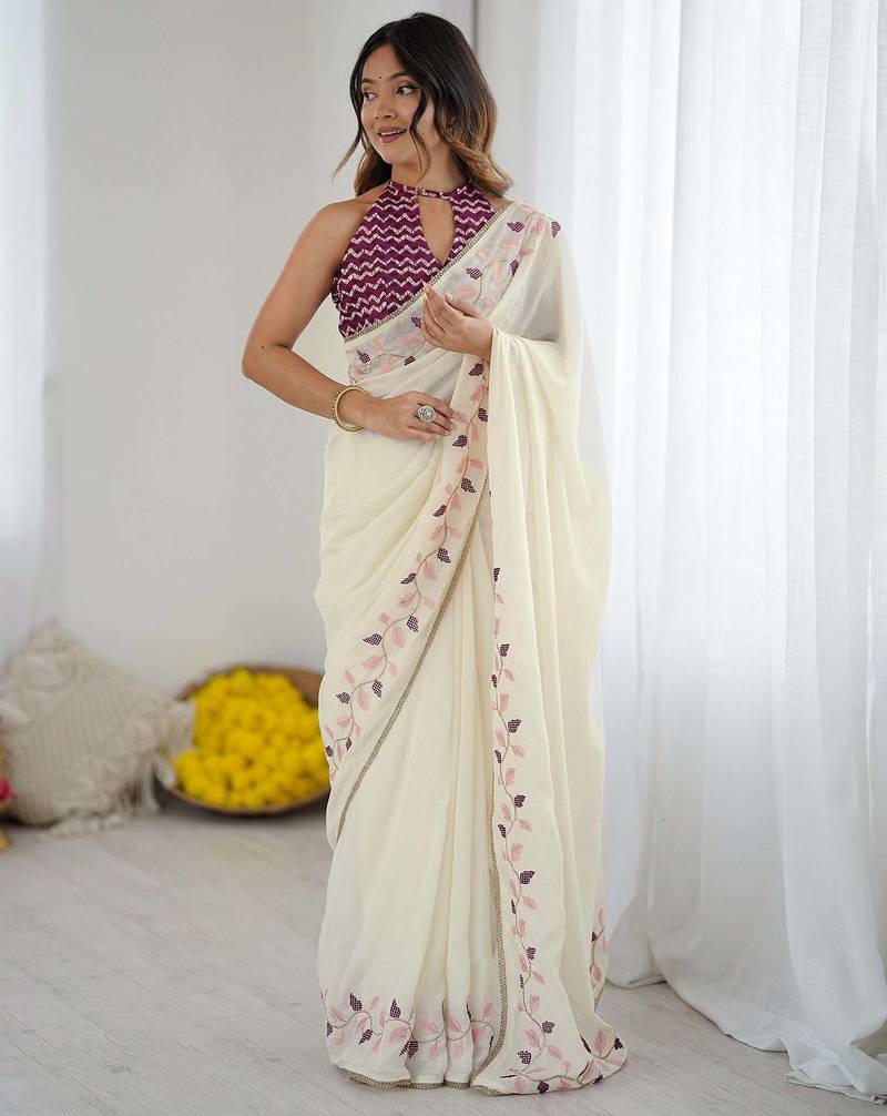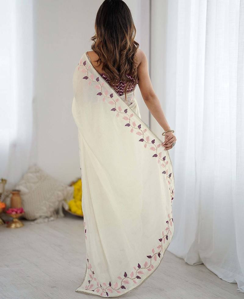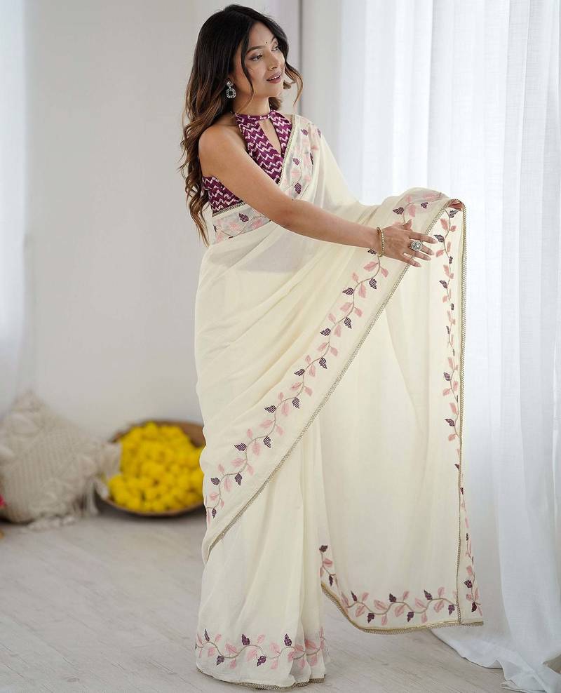Product Name | Ethnic Motifs Embroidered Georgette Saree In Offwhite | |