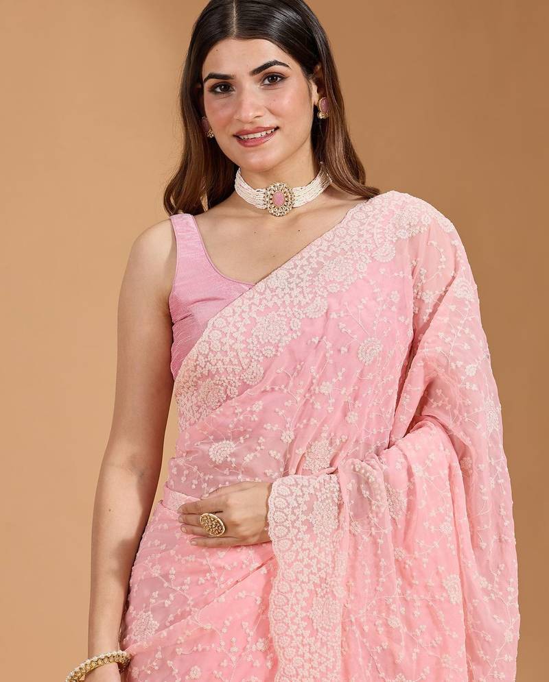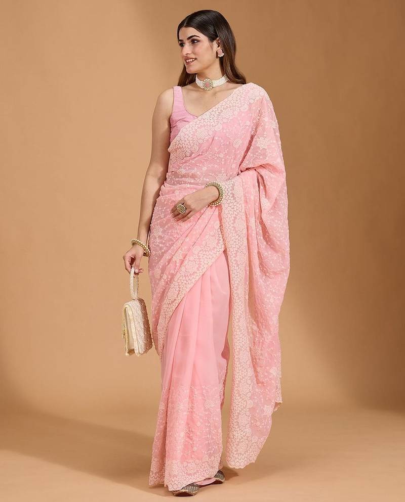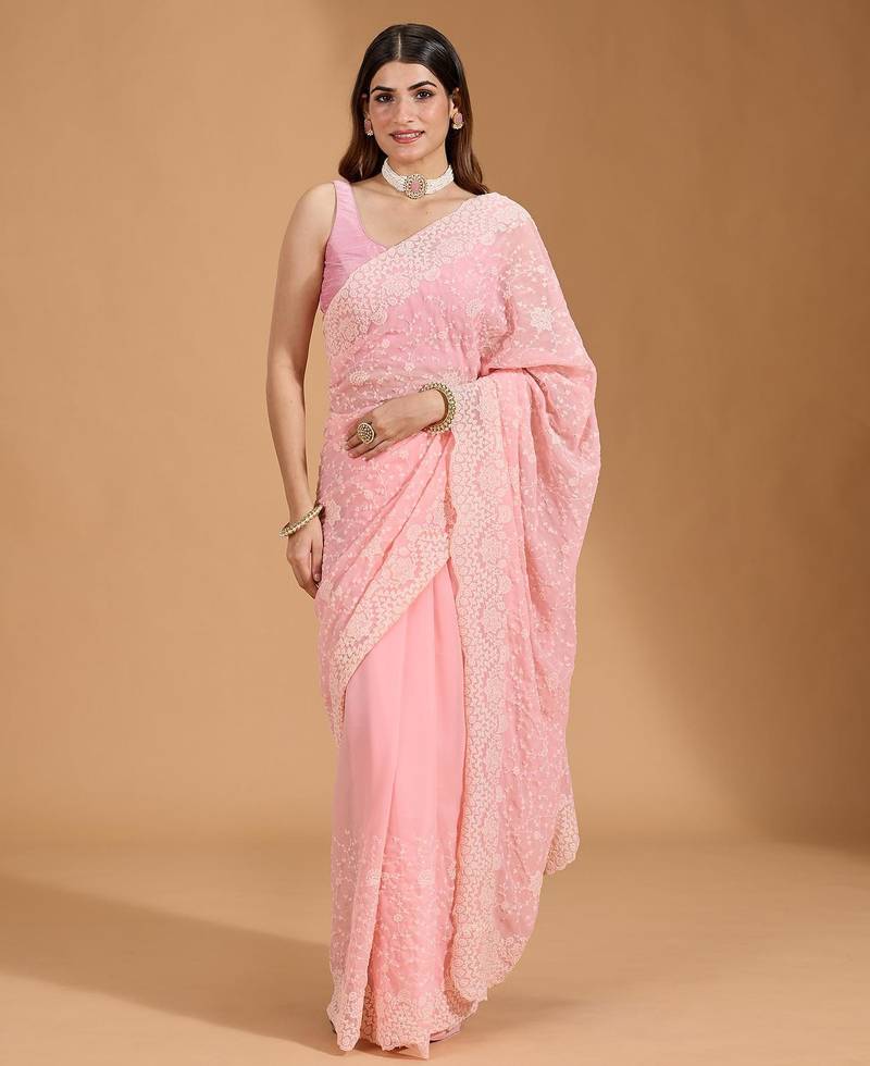 Product Name | Ethnic Motifs Embroidered Georgette Saree In Pink | |