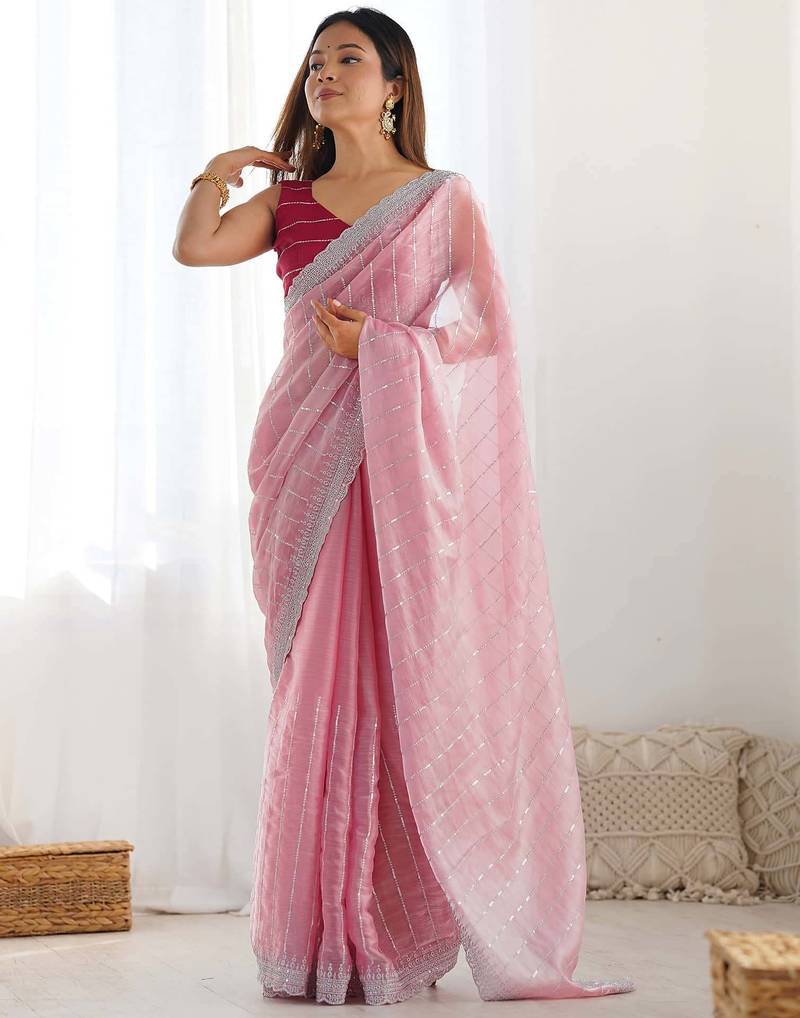• | Saree | : | Color- Pink / Fabric- Georgette |