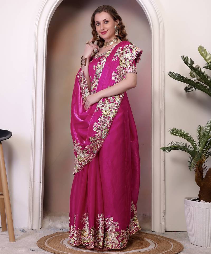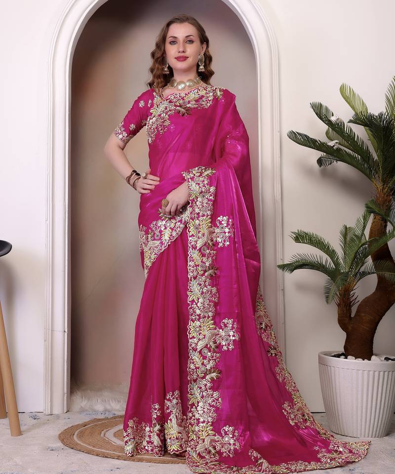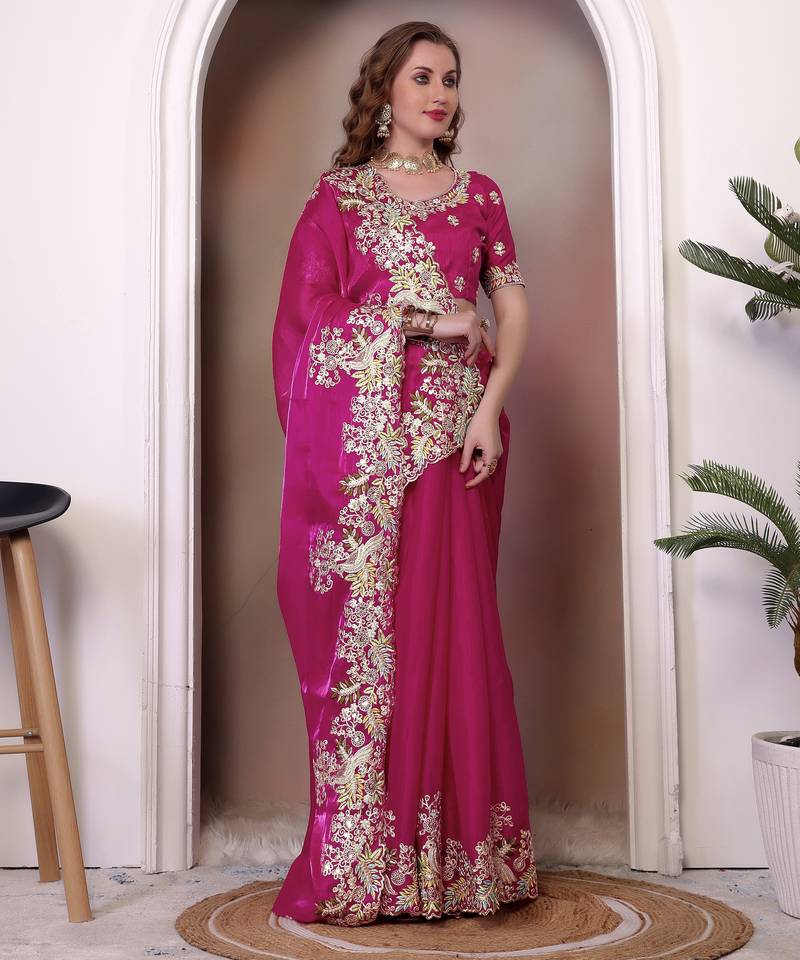 Product Name | Ethnic Motifs Embroidered Georgette Saree In Pink | |