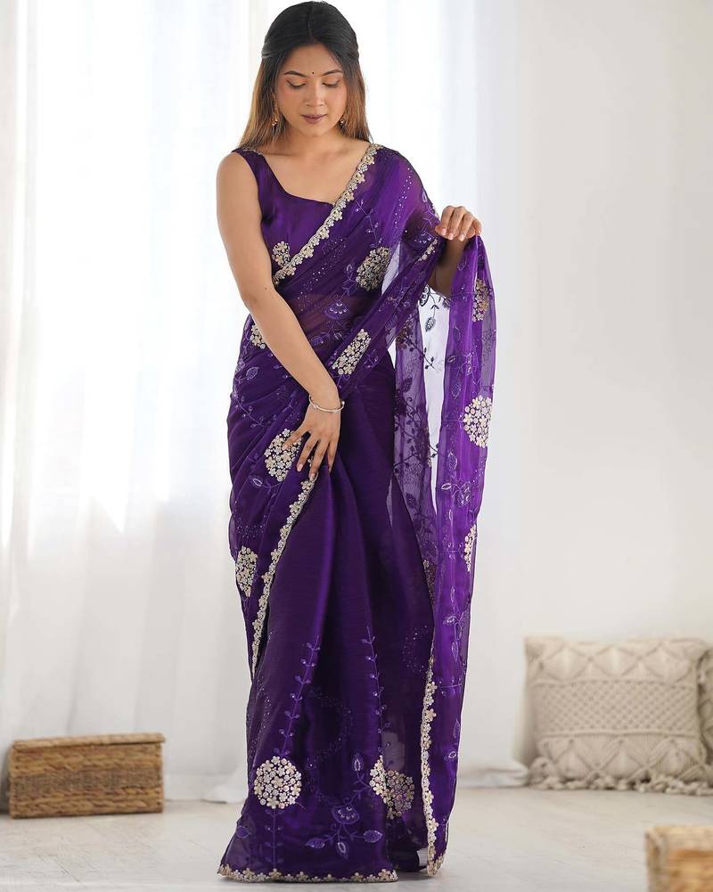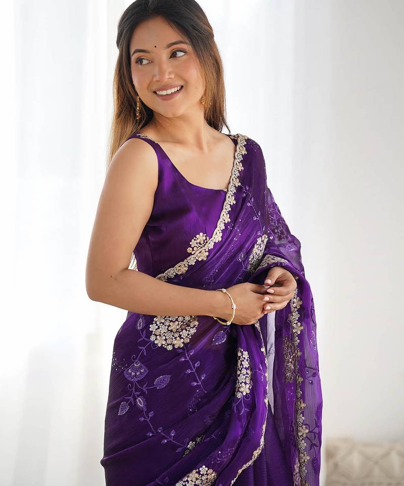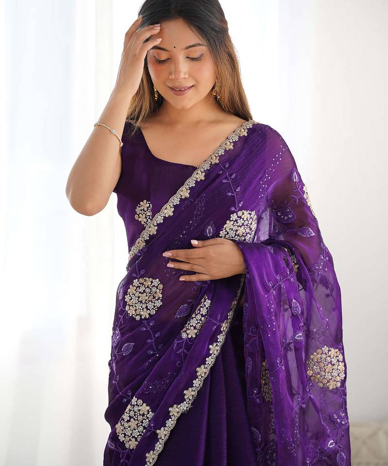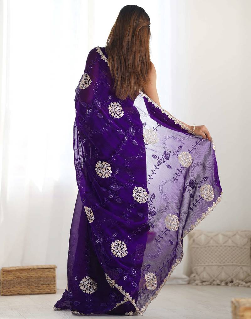 Product Name | Ethnic Motifs Embroidered Georgette Saree In Purple | |