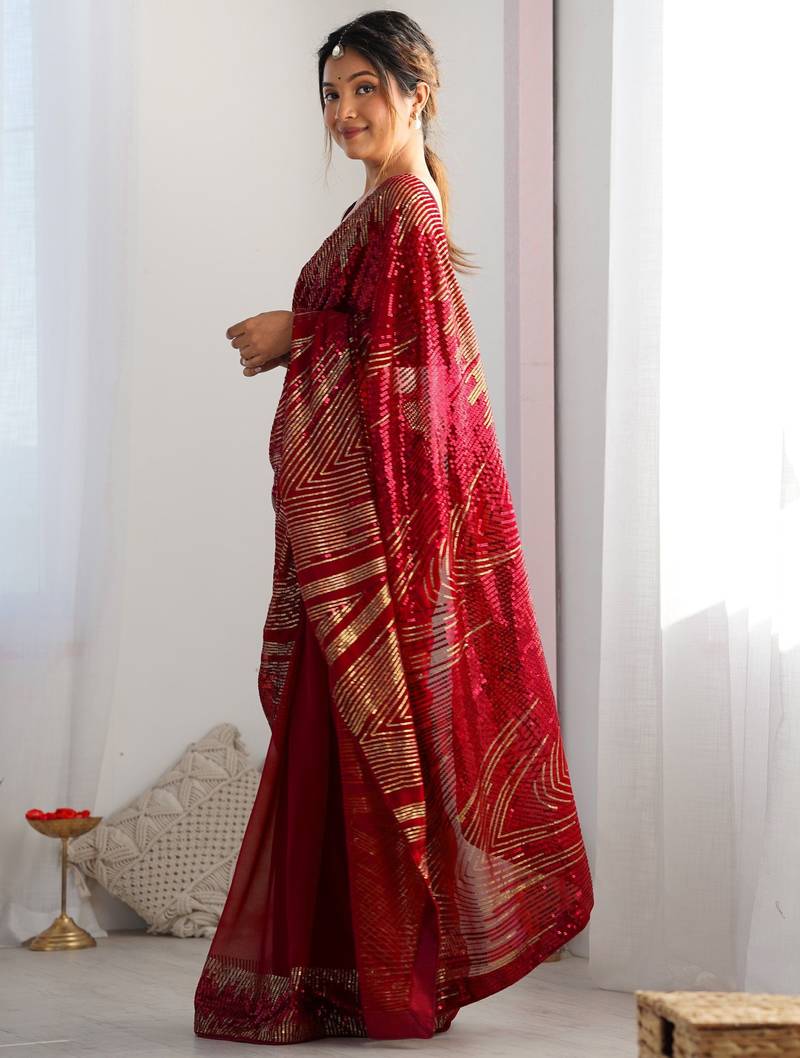 Product Name | Ethnic Motifs Embroidered Georgette Saree In Red | |