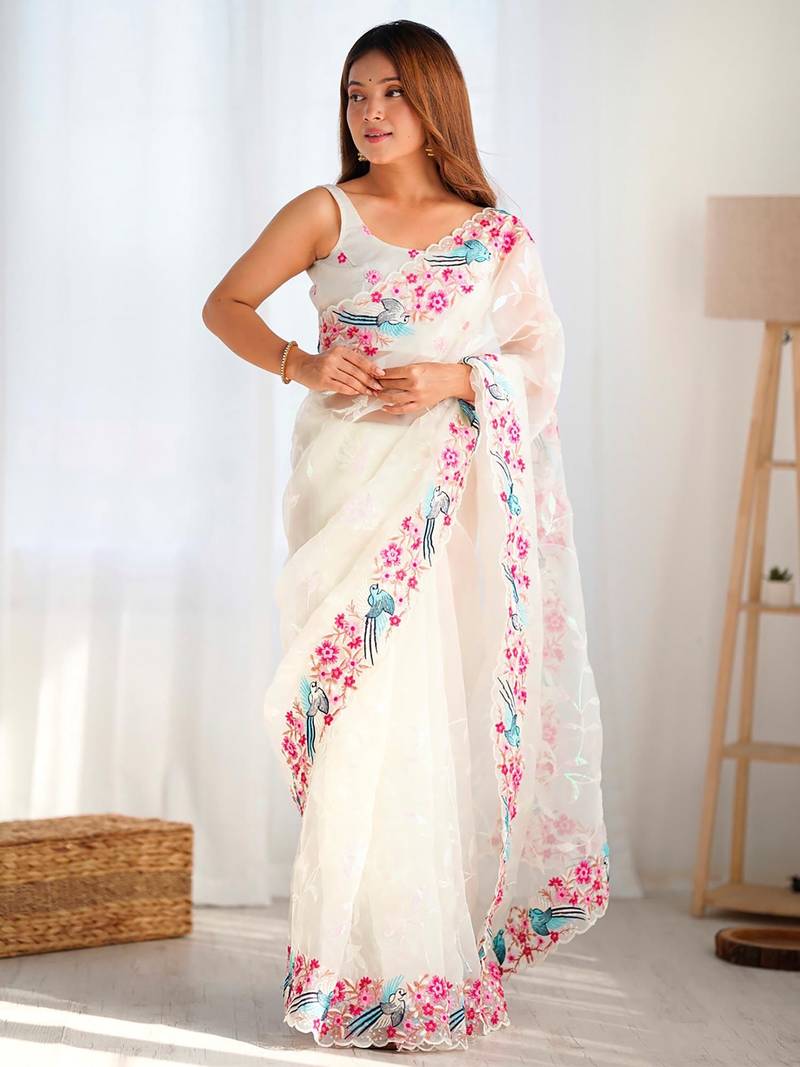 Product Name | Ethnic Motifs Embroidered Georgette Saree In White | |