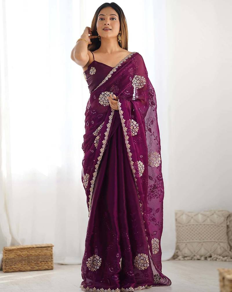 Product Description | The Delicate Floral Motifs Are Carefully Hand Embroidered Across The Pallu And Border, Making This Saree A Perfect Choice For Weddings, Festive Occasions, Or Evening Parties. Lightweight And Easy To Drape, It Offers A Flattering Fall And Luxurious Feel. |