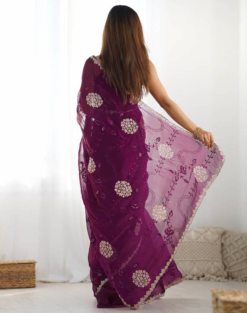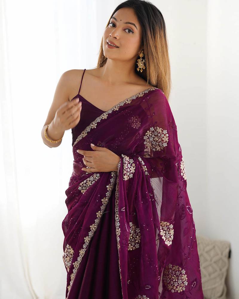 Product Name | Ethnic Motifs Embroidered Georgette Saree In Wine | |