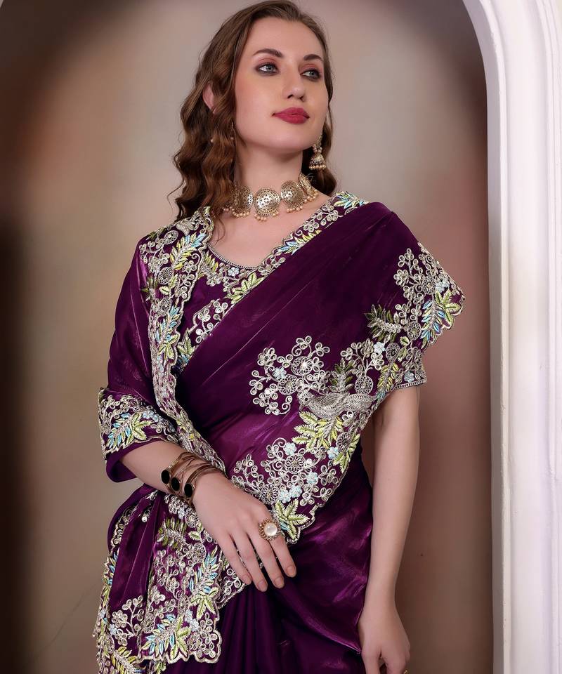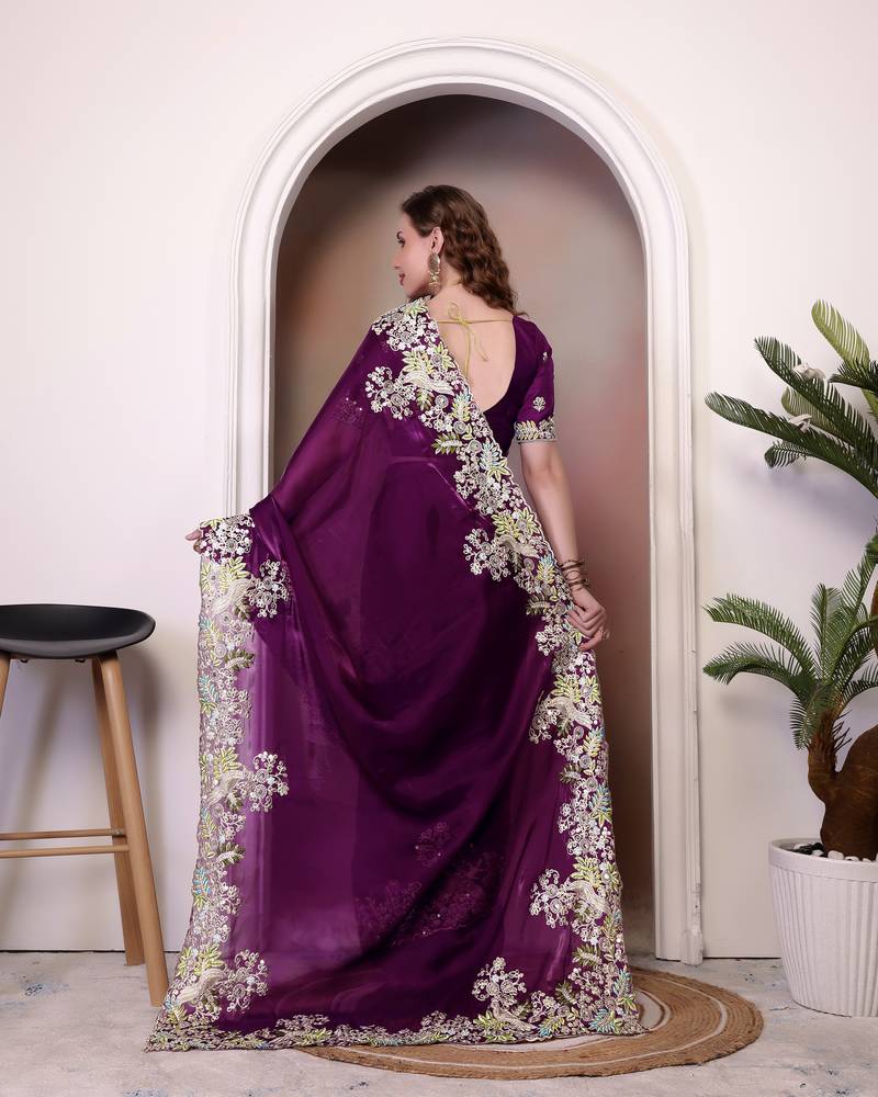 Product Name | Ethnic Motifs Embroidered Georgette Saree In Wine | |