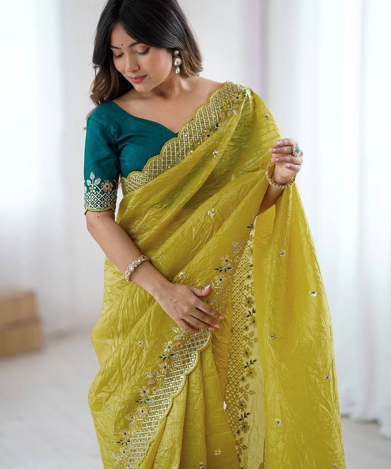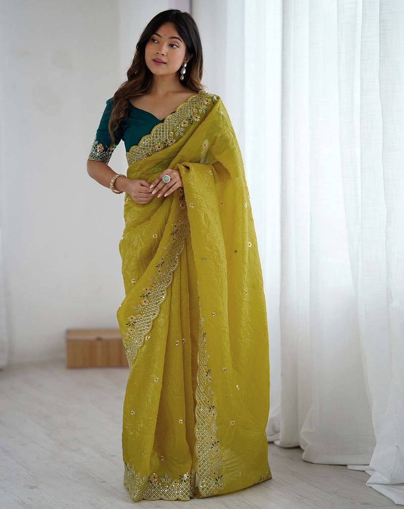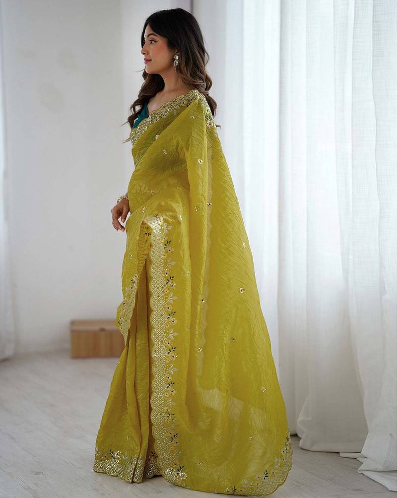 Product Name | Ethnic Motifs Embroidered Georgette Saree In Yellow | |