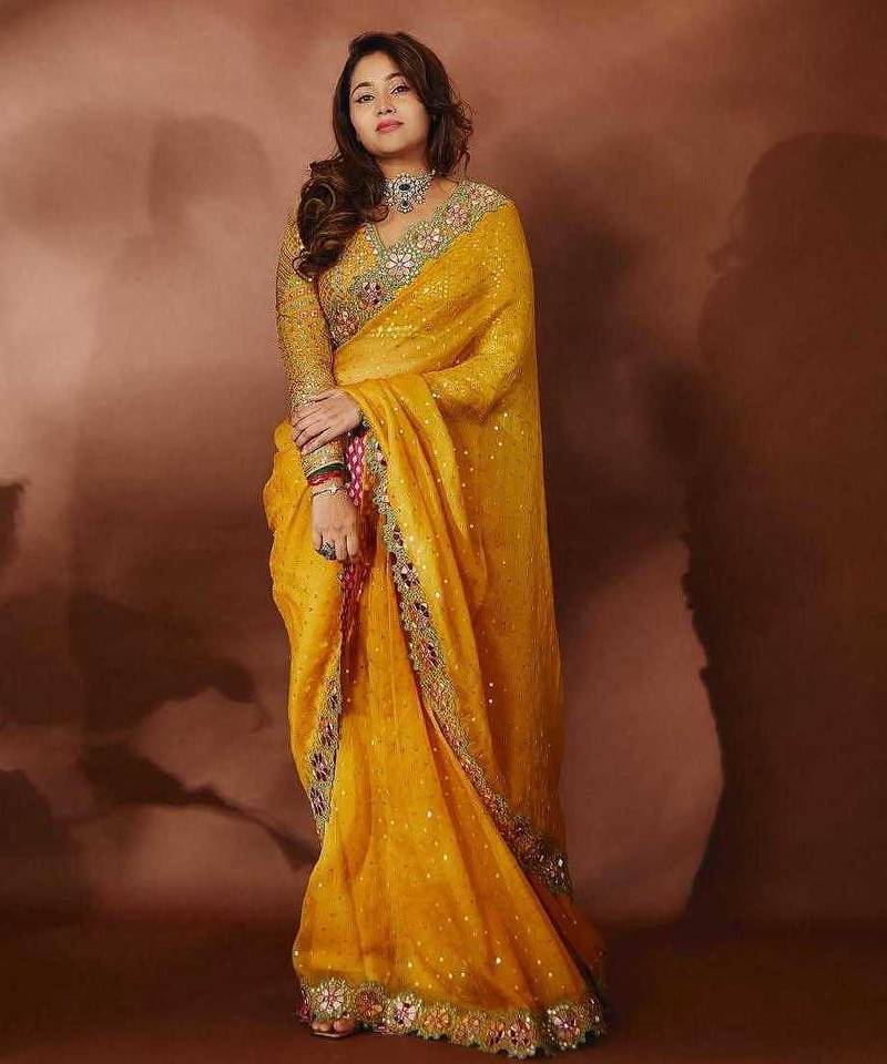 Product Name | Ethnic Motifs Embroidered Georgette Saree In Yellow | |