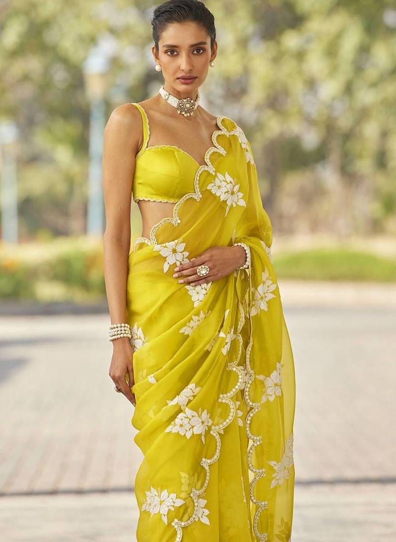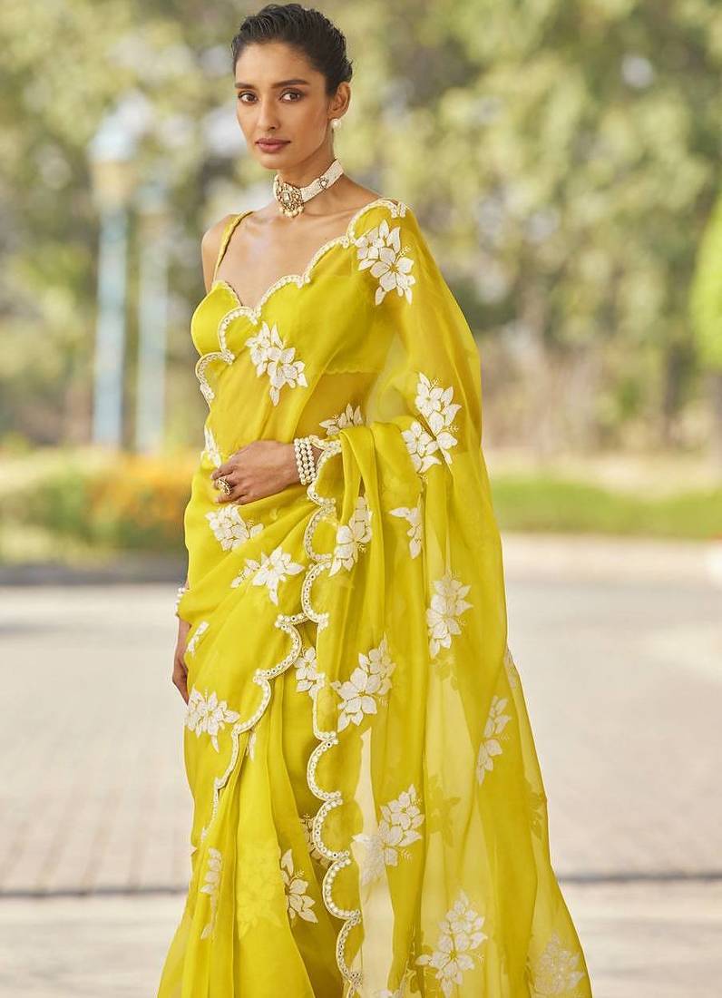 Product Name | Ethnic Motifs Embroidered Georgette Saree In Yellow | |