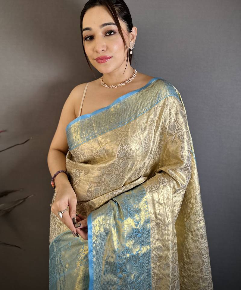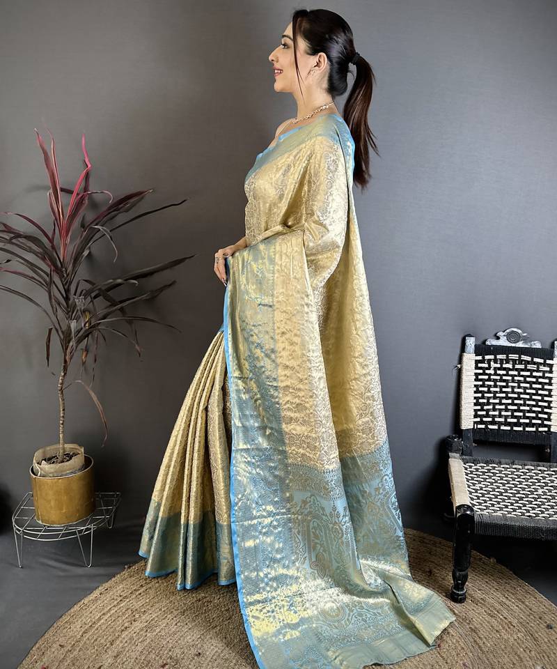 Light golden art silk woven art-silk-sarees