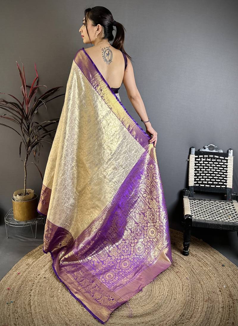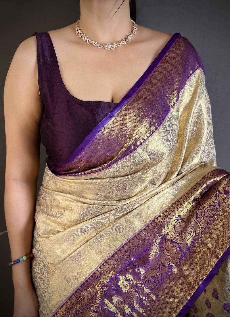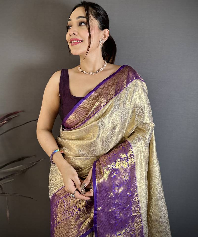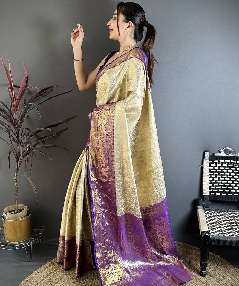 Light golden art silk woven art-silk-sarees
