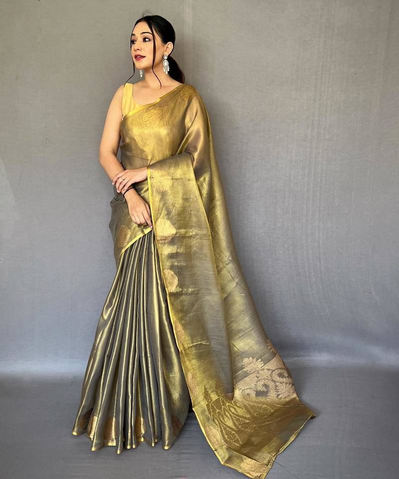 | • | Saree | : | Color- Golden / Fabric- Art Silk |