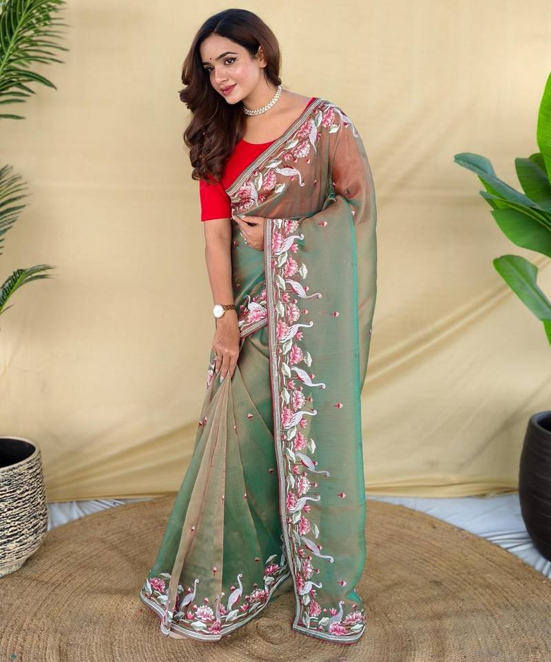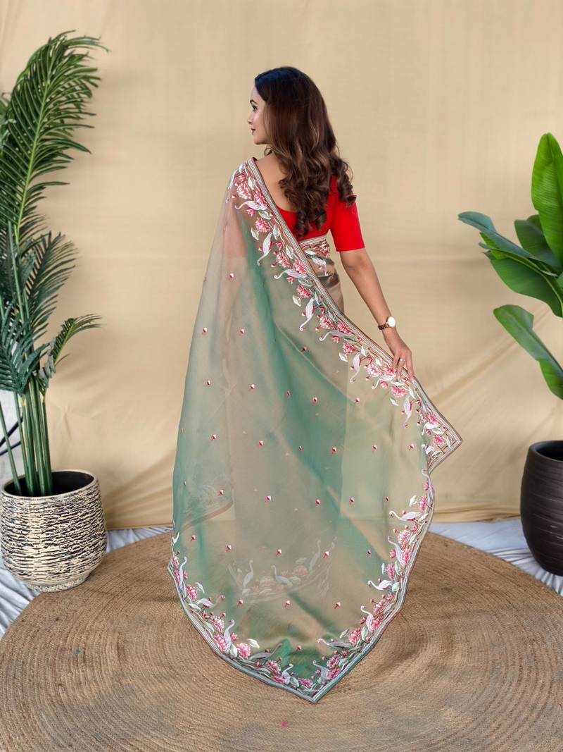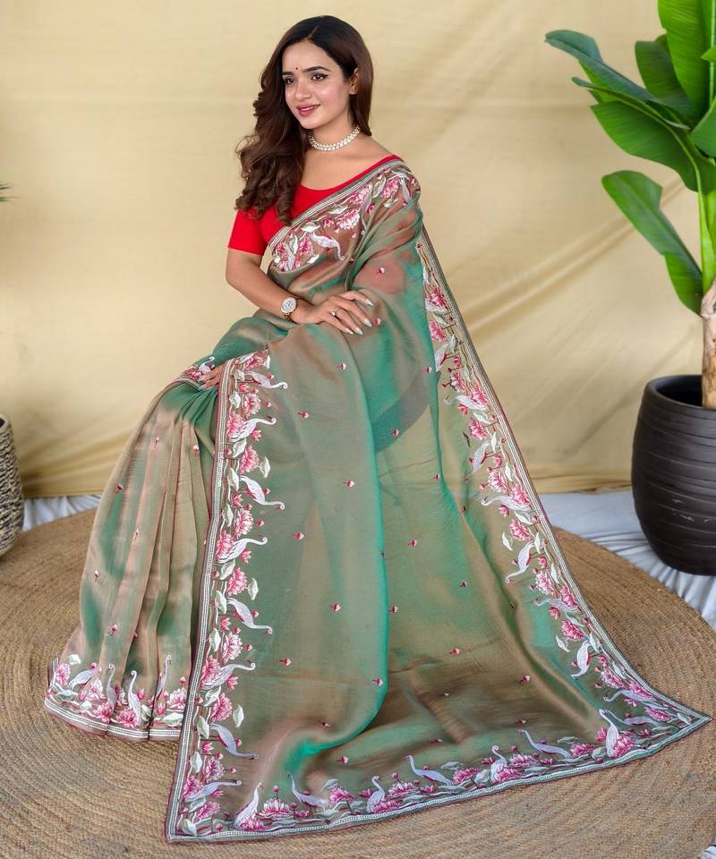 | • | Saree | : | Color- Green / Fabric- Art Silk |