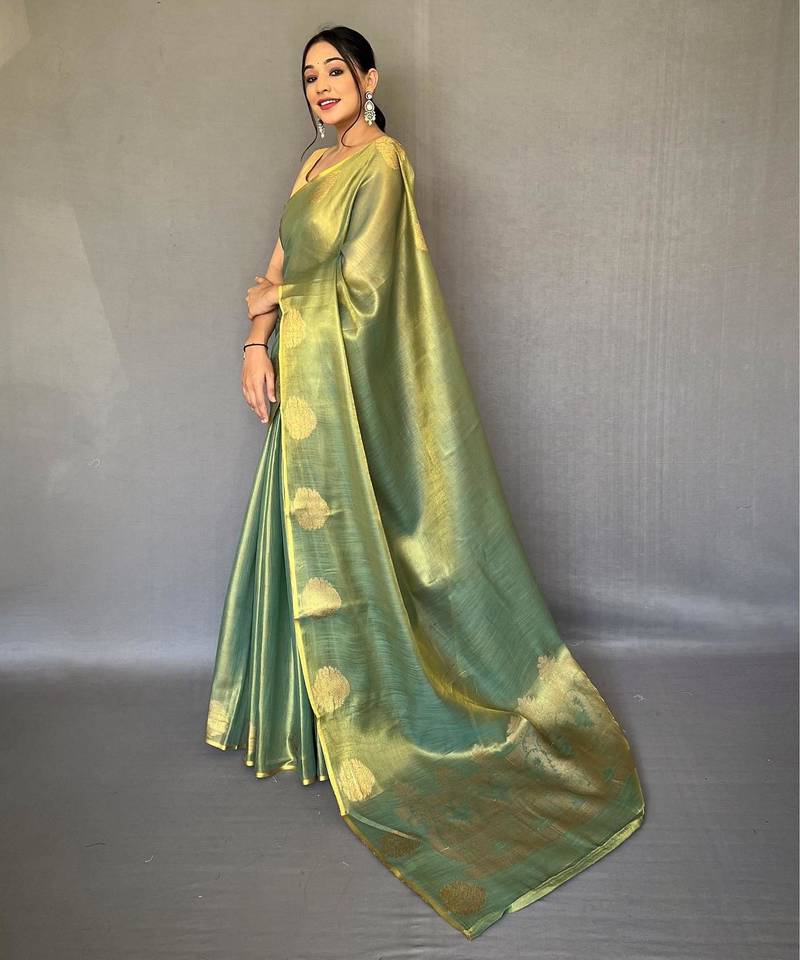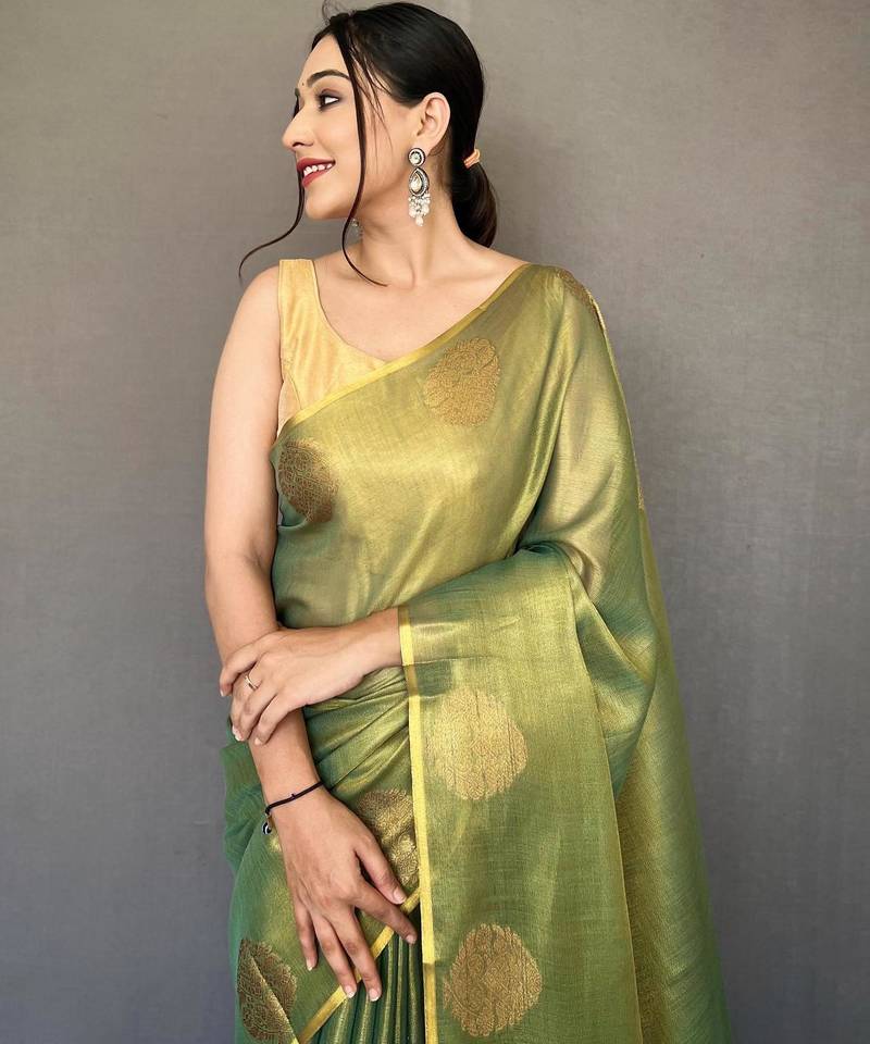 Green art silk woven saree