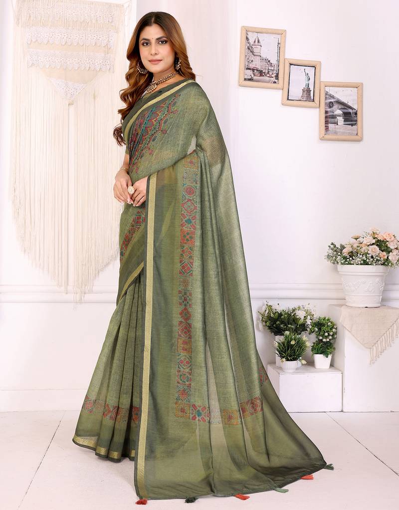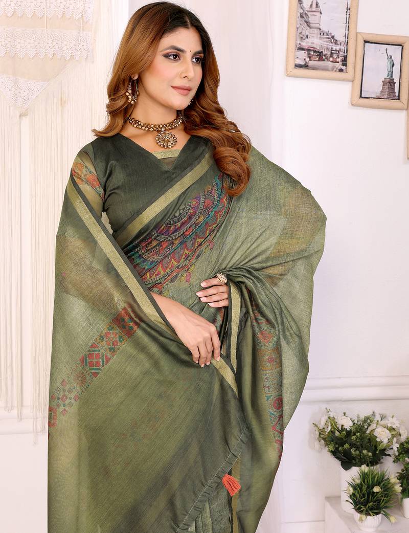| Product Name | Green Printed Art Silk Designer Pallu Chanderi Saree | |