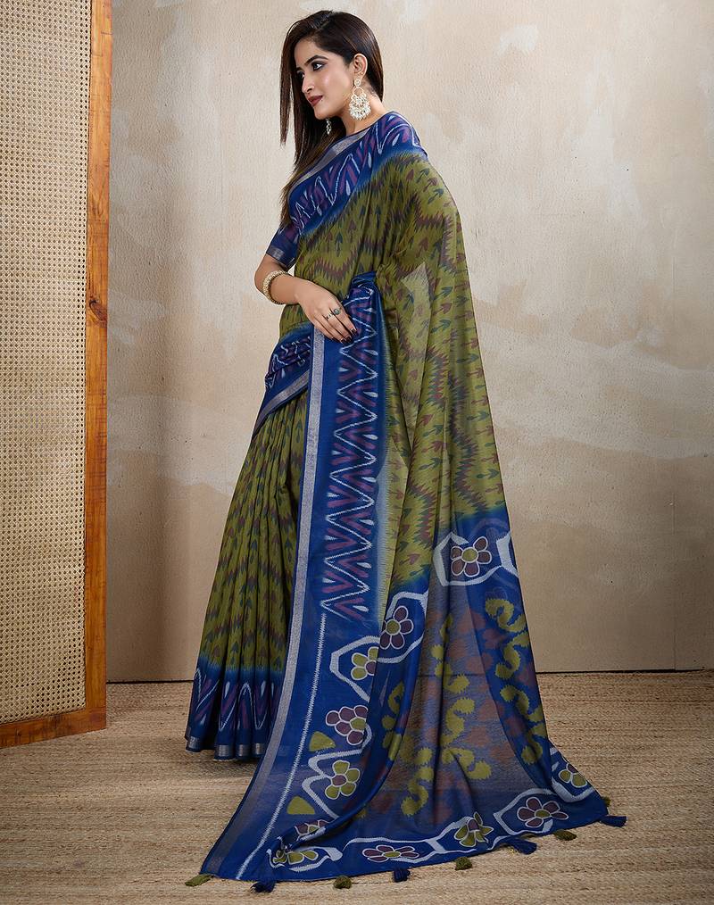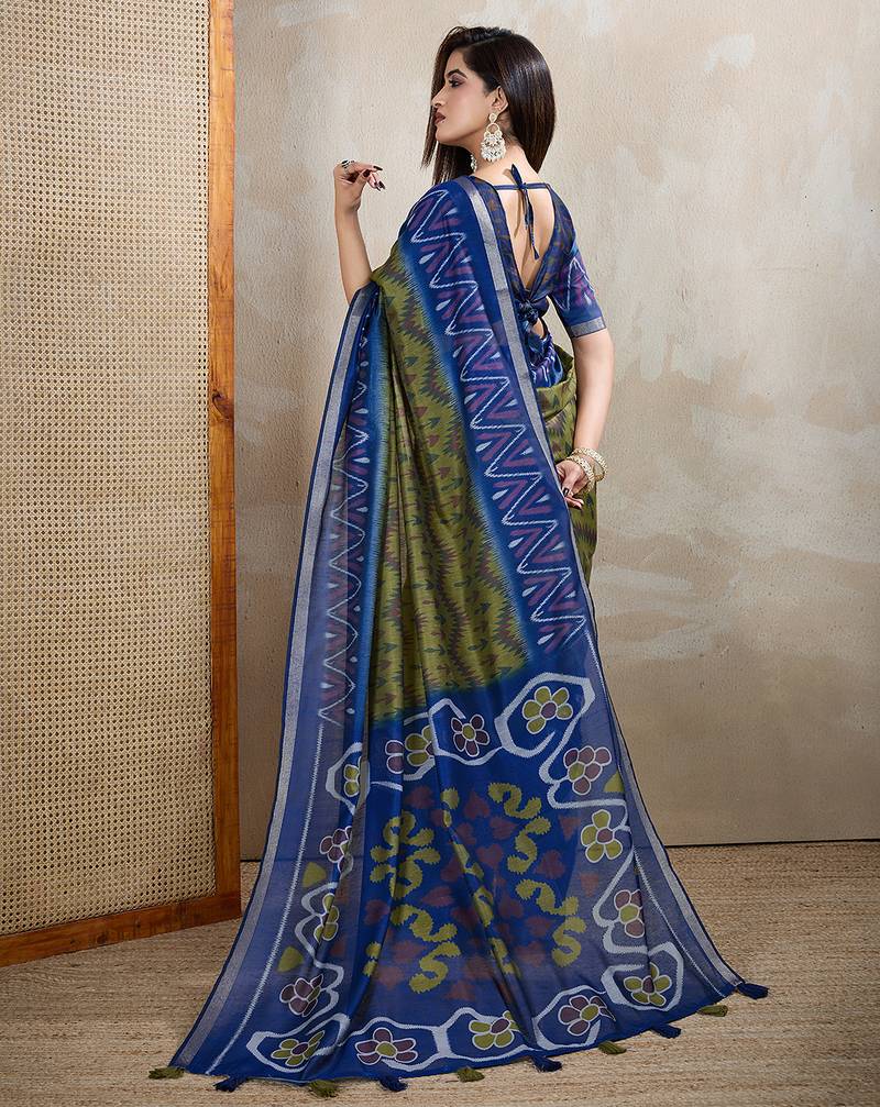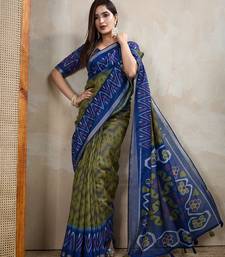 Green printed art silk designer pallu chanderi saree