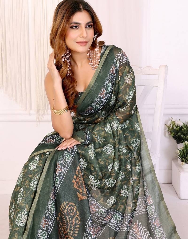 | Product Name | Green Printed Art Silk Designer Pallu Saree | |
