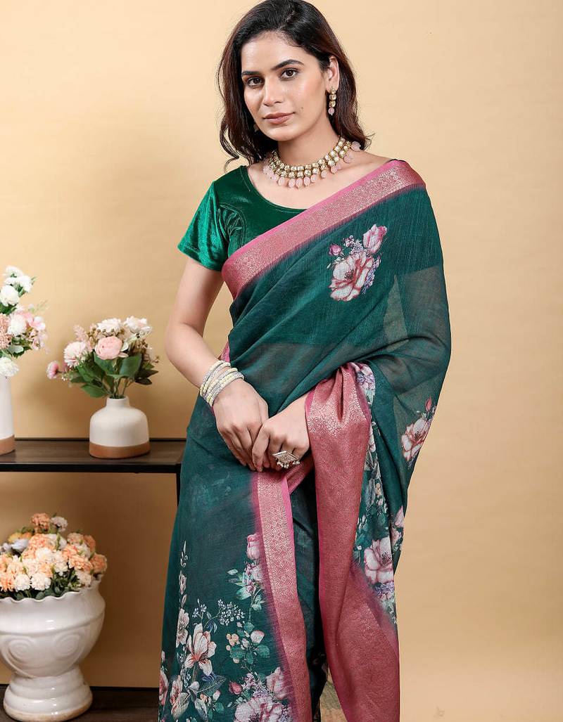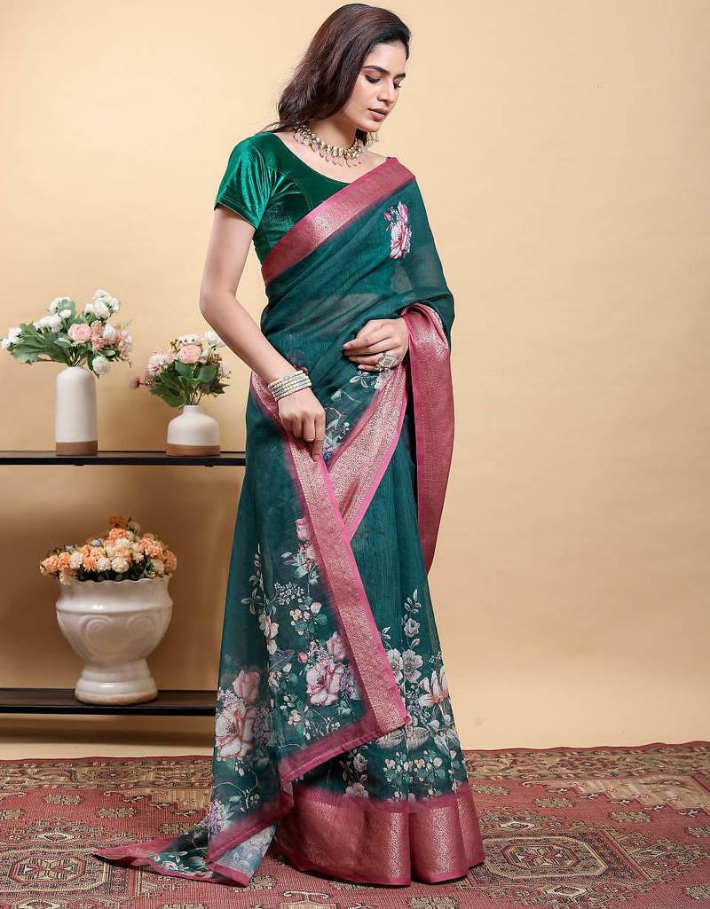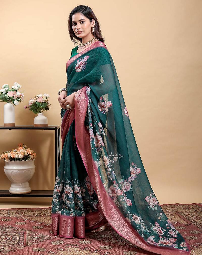 | Product Name | Green Printed Art Silk Designer Pallu Saree | |