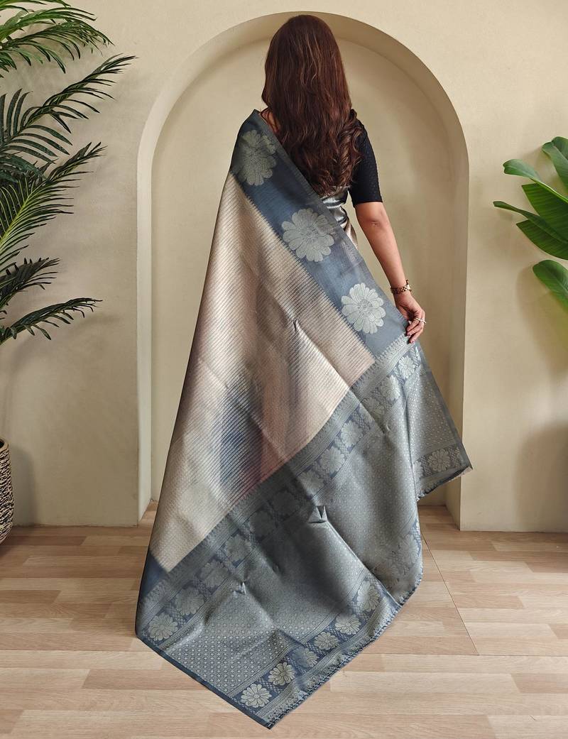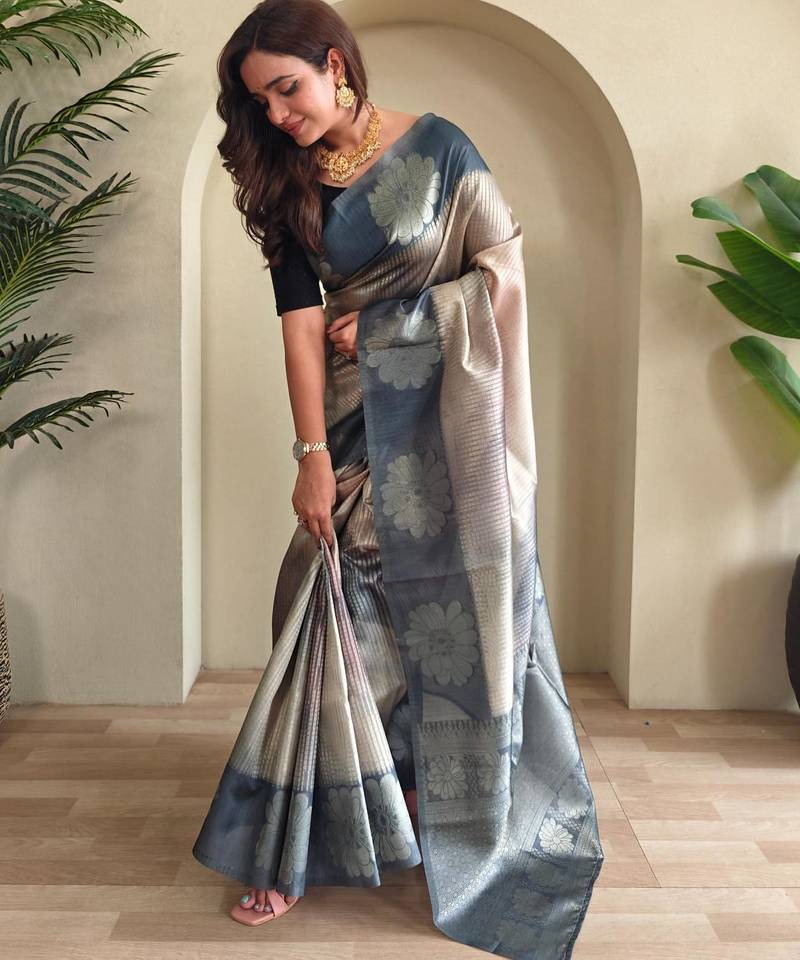Grey art silk woven saree