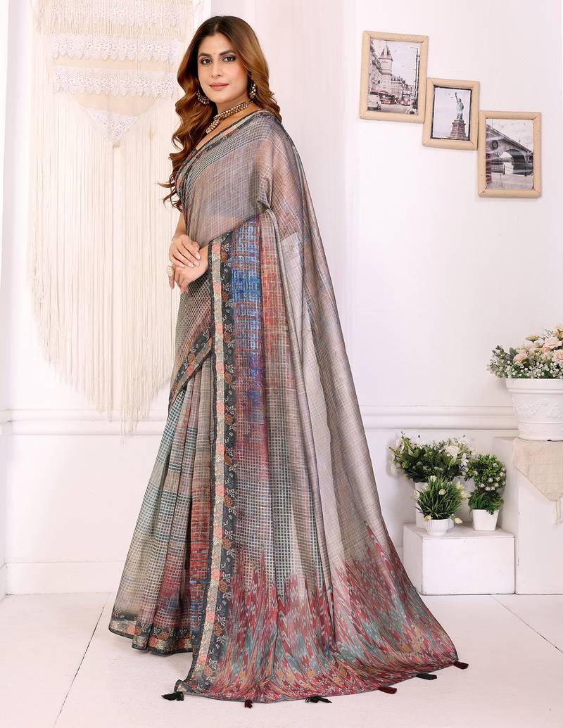 | Product Name | Grey Printed Art Silk Designer Pallu Chanderi Saree | |