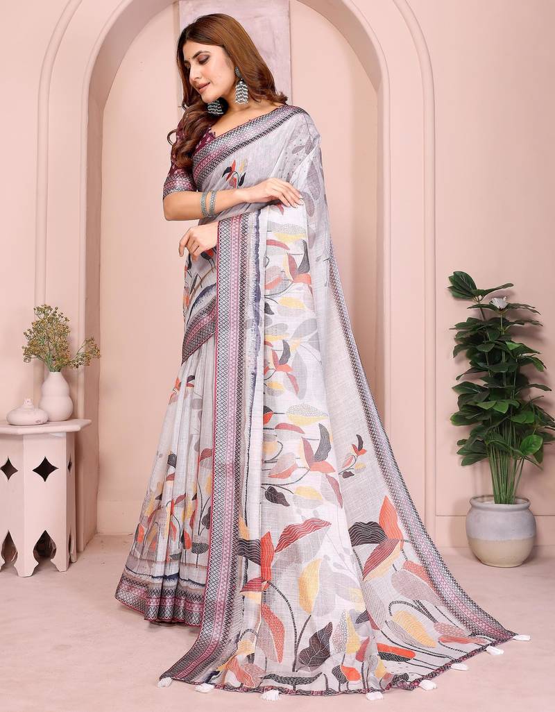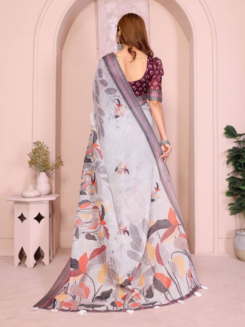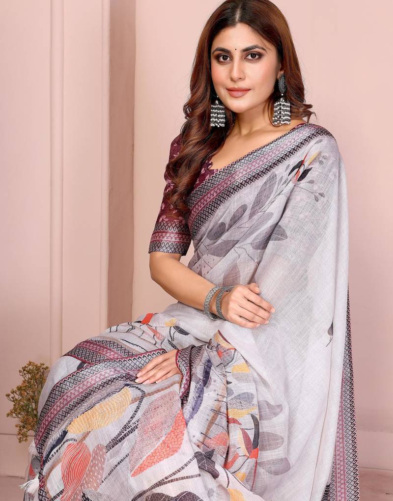 Product Name | Grey Printed Designer Pallu Linen Saree | |
