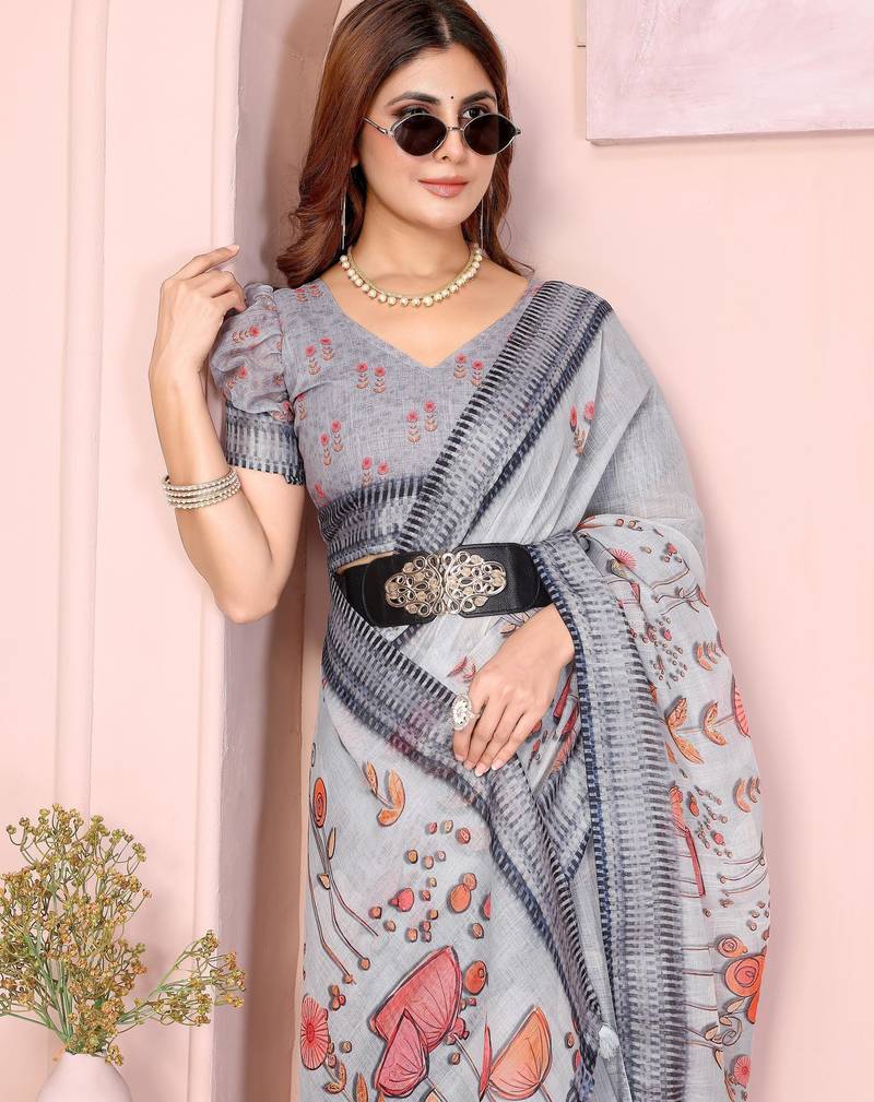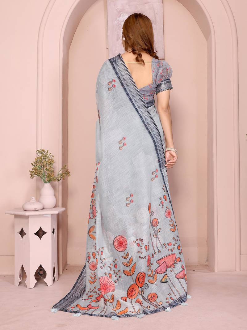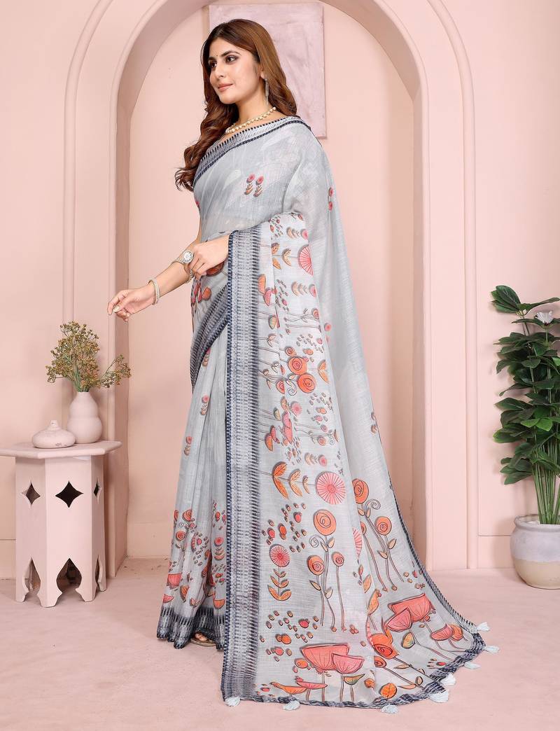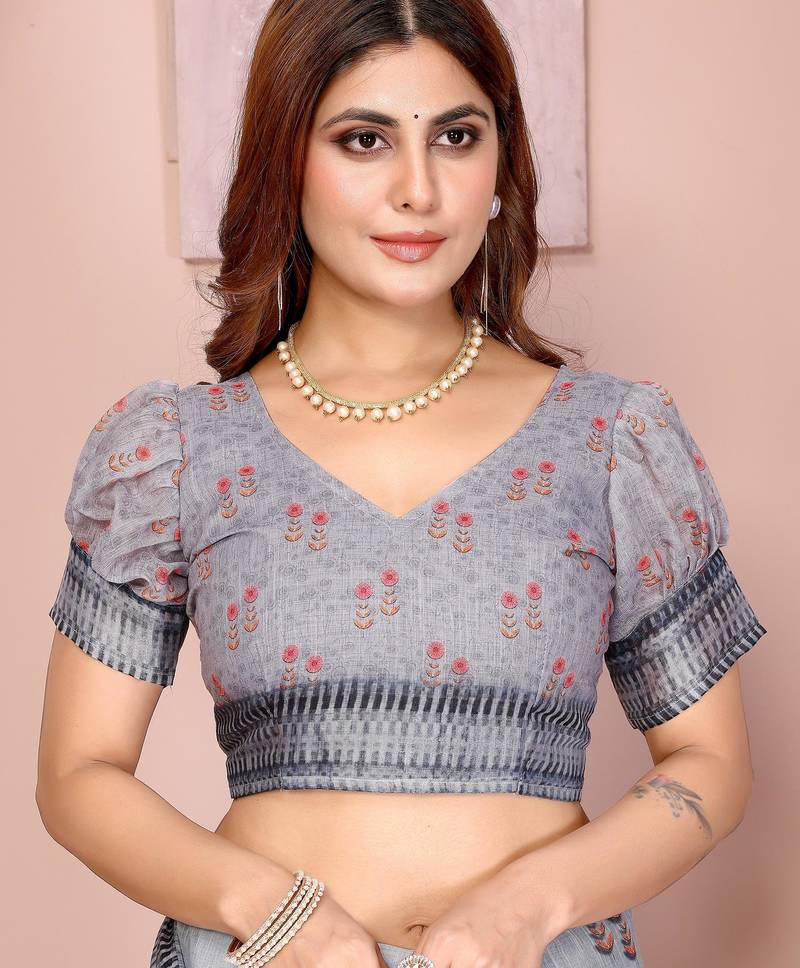 Product Name | Grey Printed Designer Pallu Linen Saree | |
