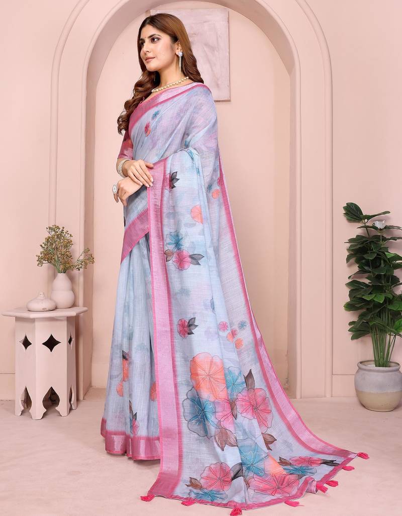 Product Name | Grey Printed Designer Pallu Linen Saree | |