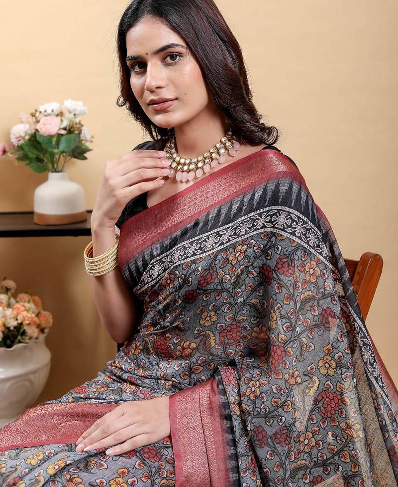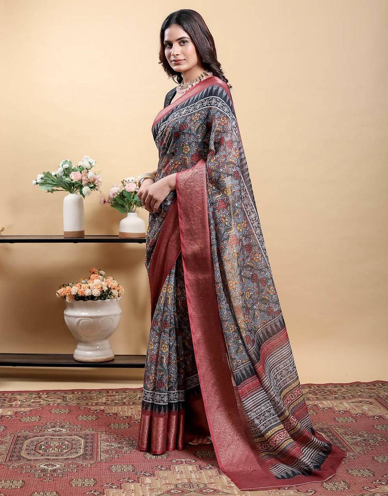 | Product Name | Grey Printed Art Silk Designer Pallu Saree | |