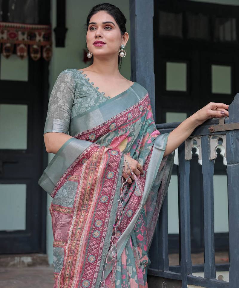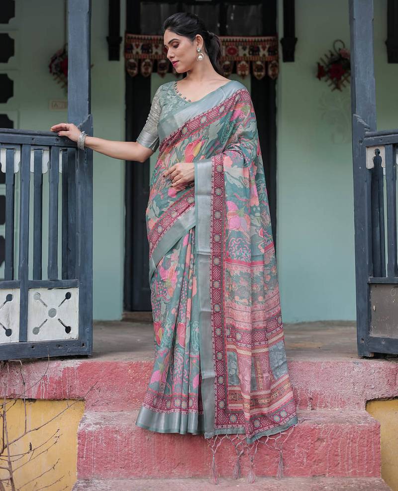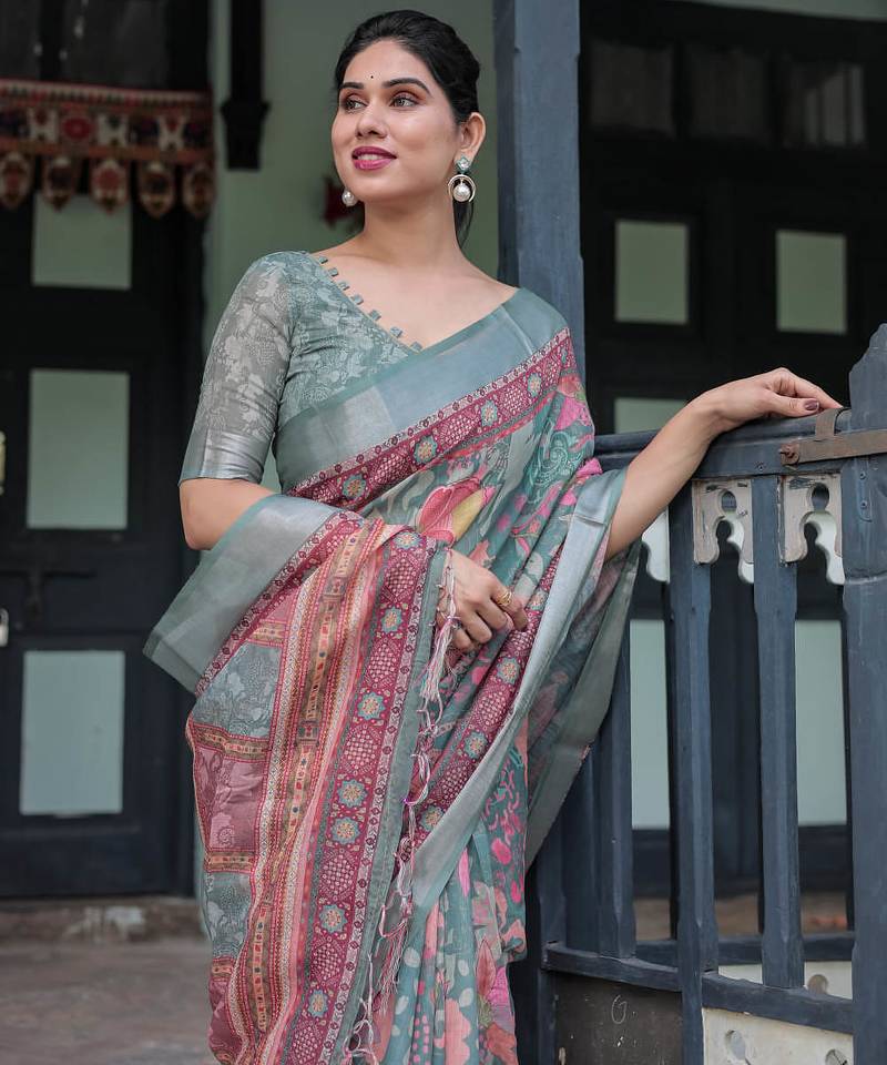 | Product Name | Grey Printed Art Silk Designer Pallu Saree | |