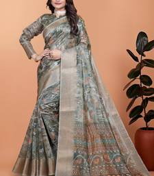 Grey printed art silk designer pallu saree