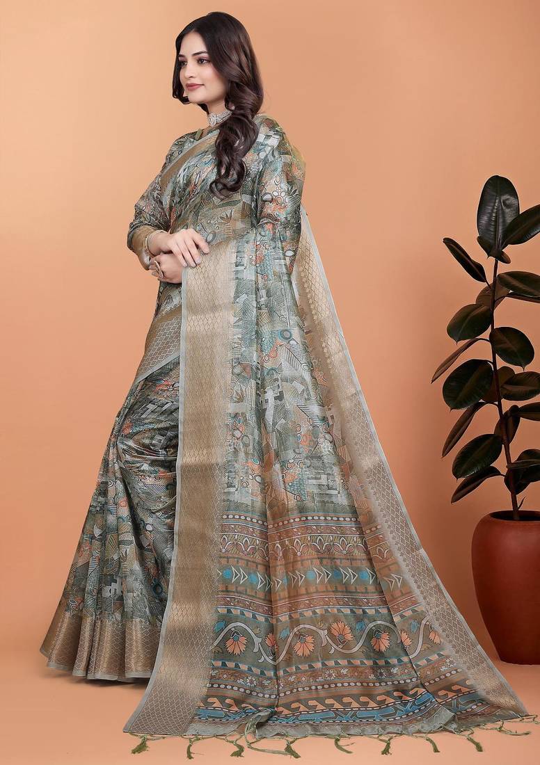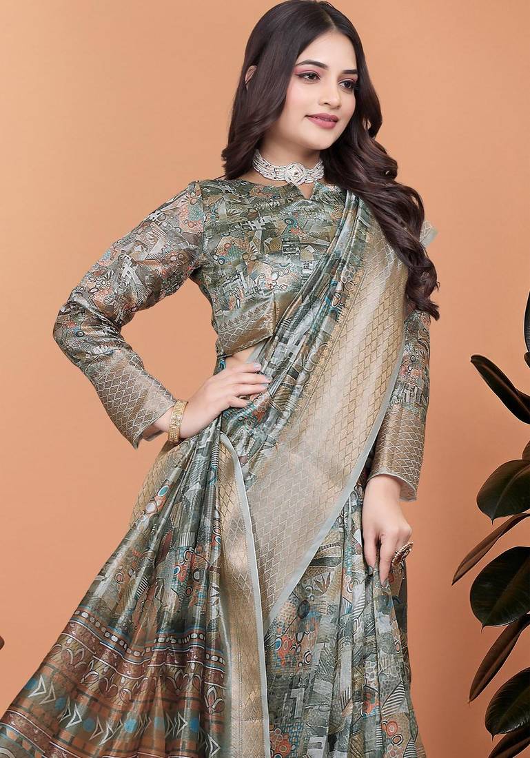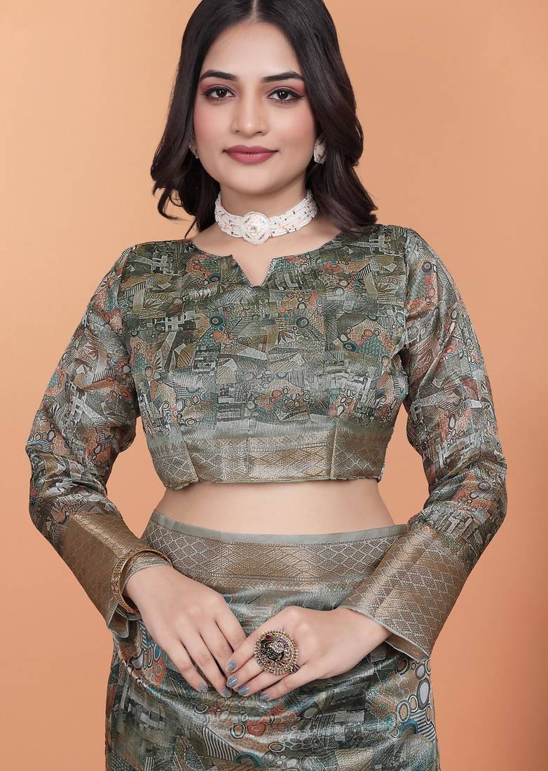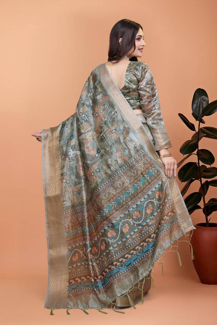 | Product Name | Grey Printed Art Silk Designer Pallu Saree | |