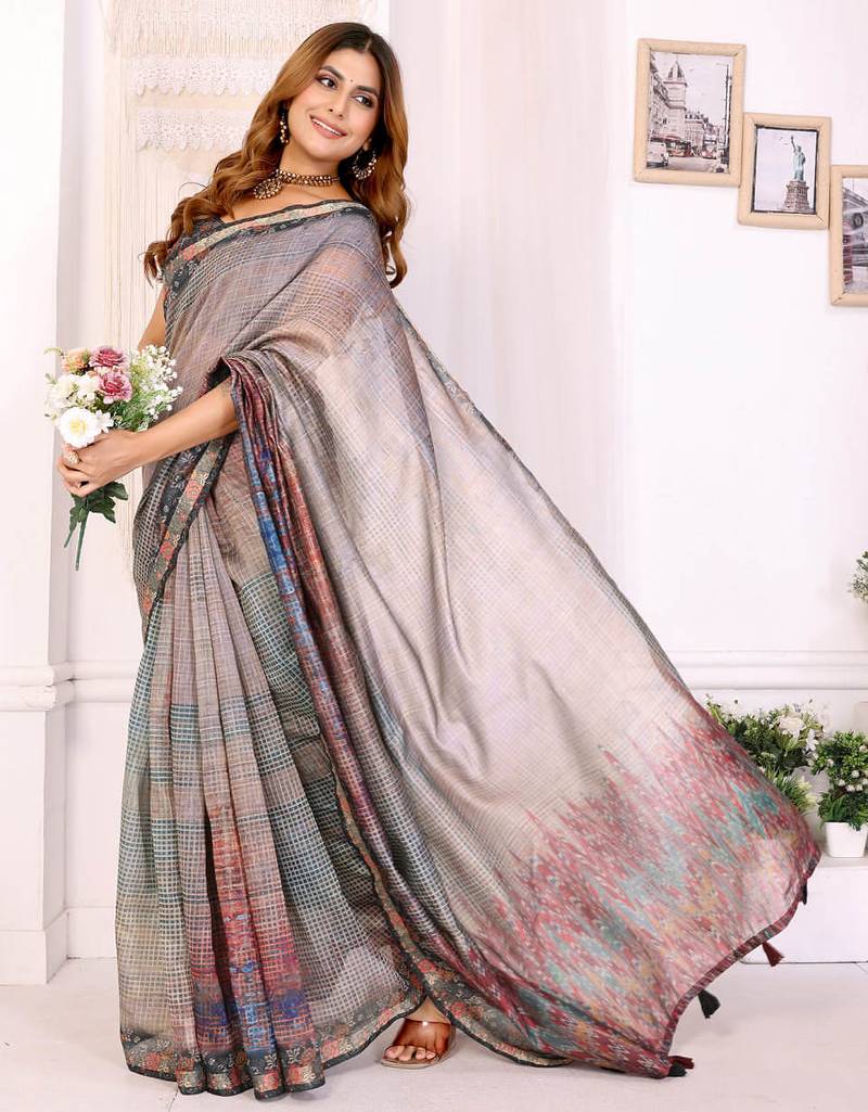 | Product Name | Grey Printed Art Silk Designer Pallu Saree | |