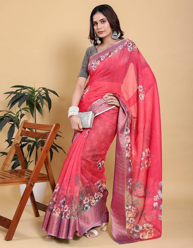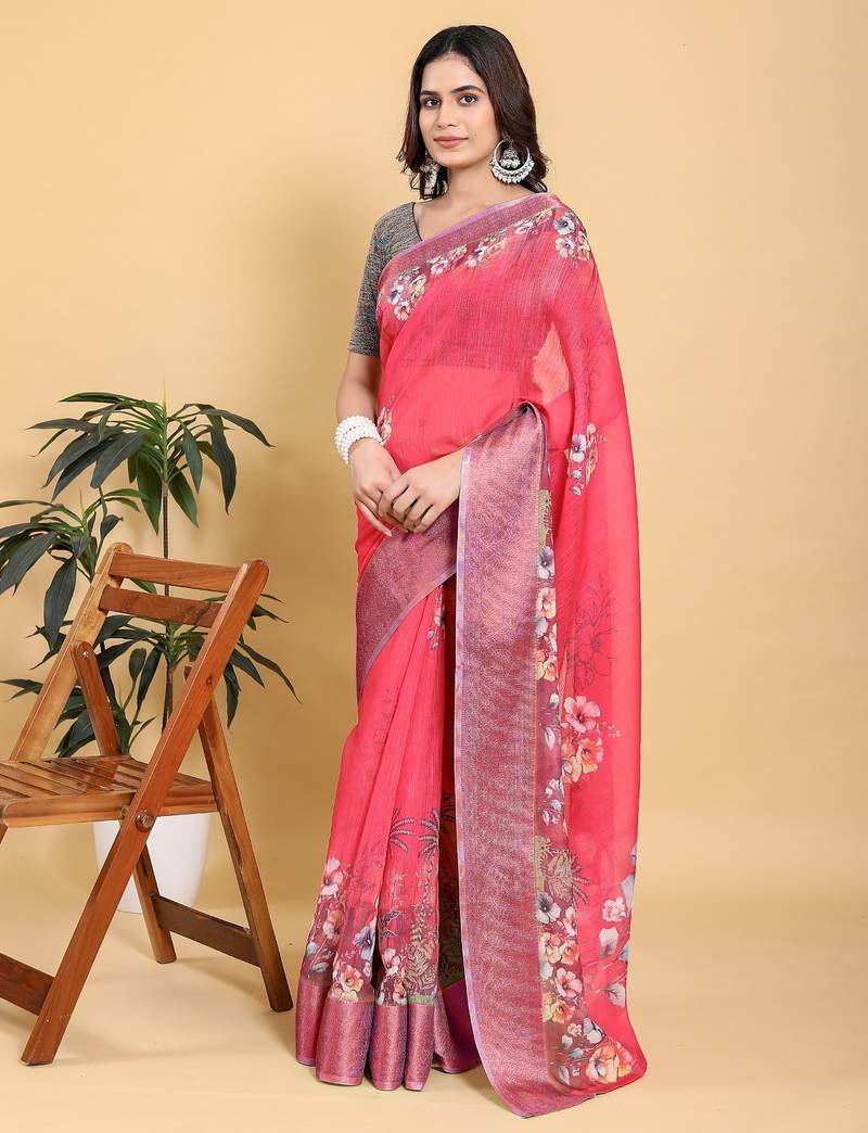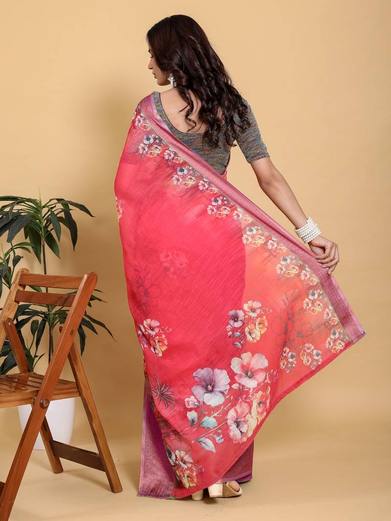 | Product Name | Hot Pink Printed Art Silk Designer Pallu Saree | |