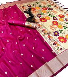 Hot pink soft silk paithani saree with floral zari border & designer pallu