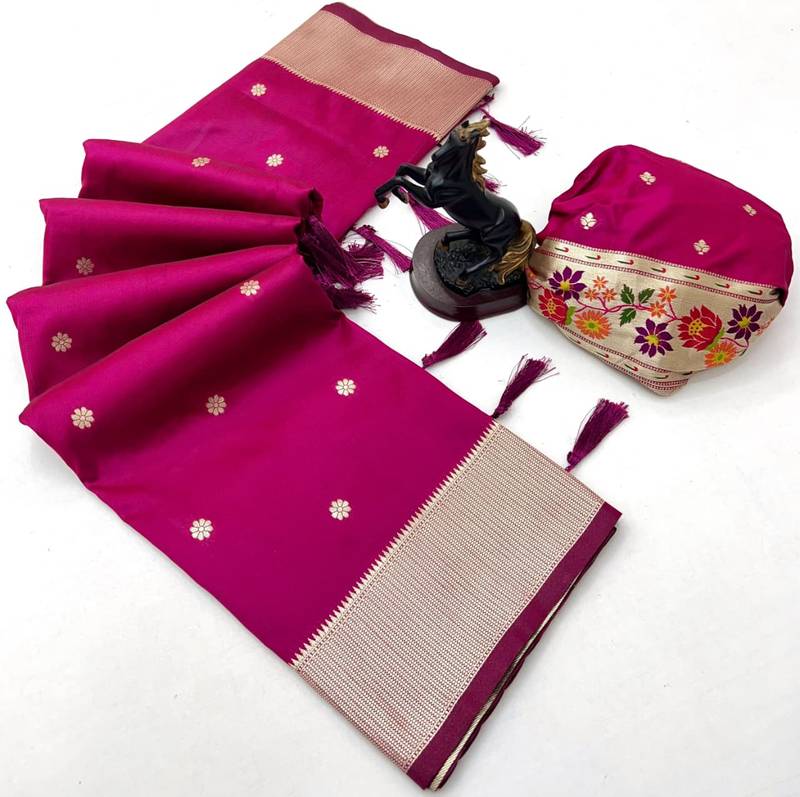 | Product Name | Hot Pink Soft Silk Paithani Saree With Floral Zari Border & Designer Pallu | |