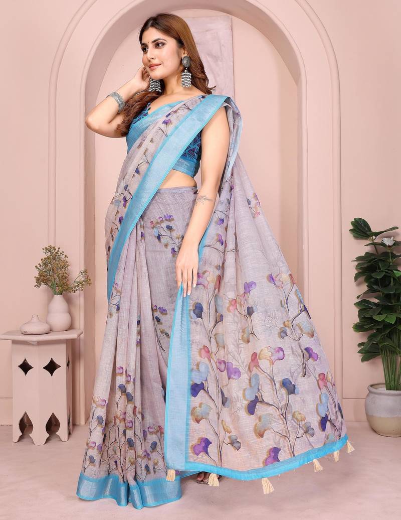Product Name | Lavender Printed Designer Pallu Linen Saree | |