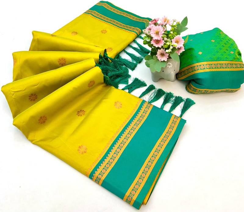 | Product Name | Lemon Soft Silk Saree With Dual Zari Motifs, Narayan Border & Contrast Pallu | |