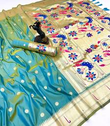 Light green soft silk paithani saree with flora zari weaving & muniya border
