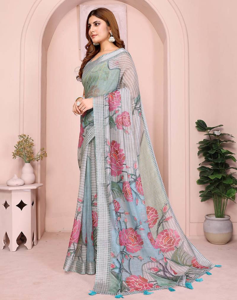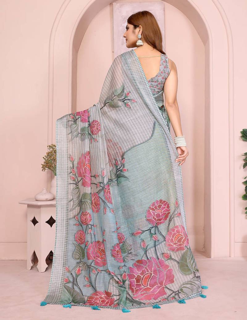 Product Name Light Grey Printed Art Silk Designer Pallu Saree