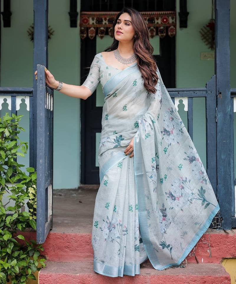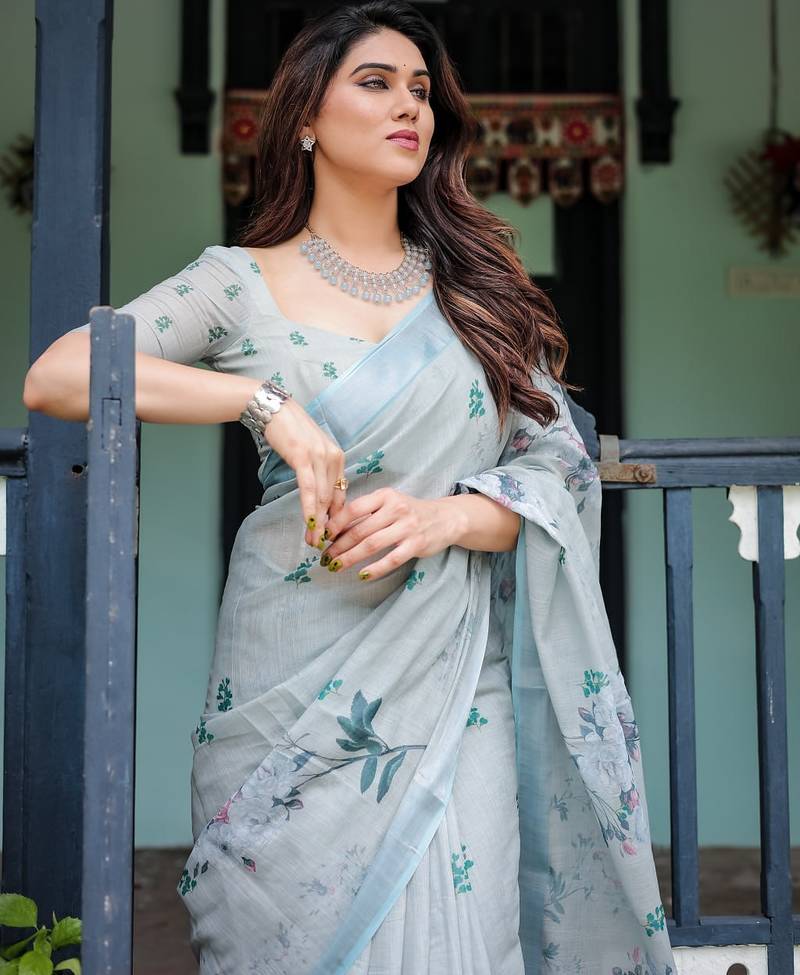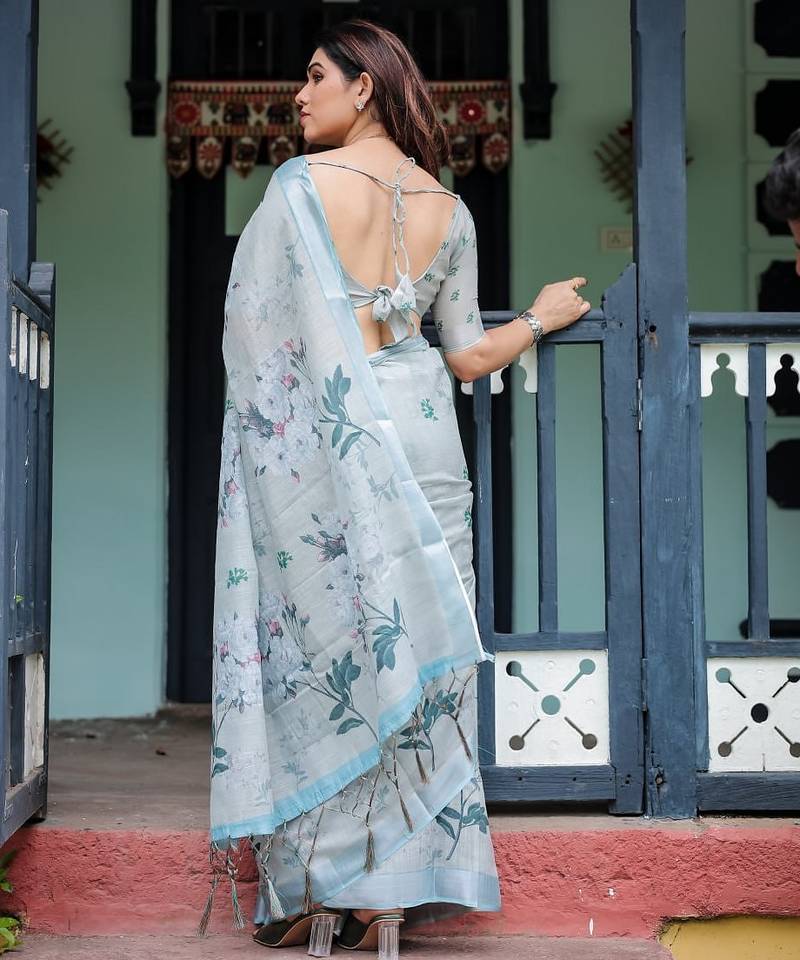 | Product Name | Light Grey Printed Art Silk Designer Pallu Saree | |