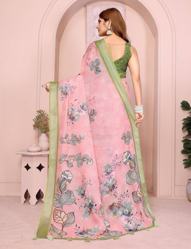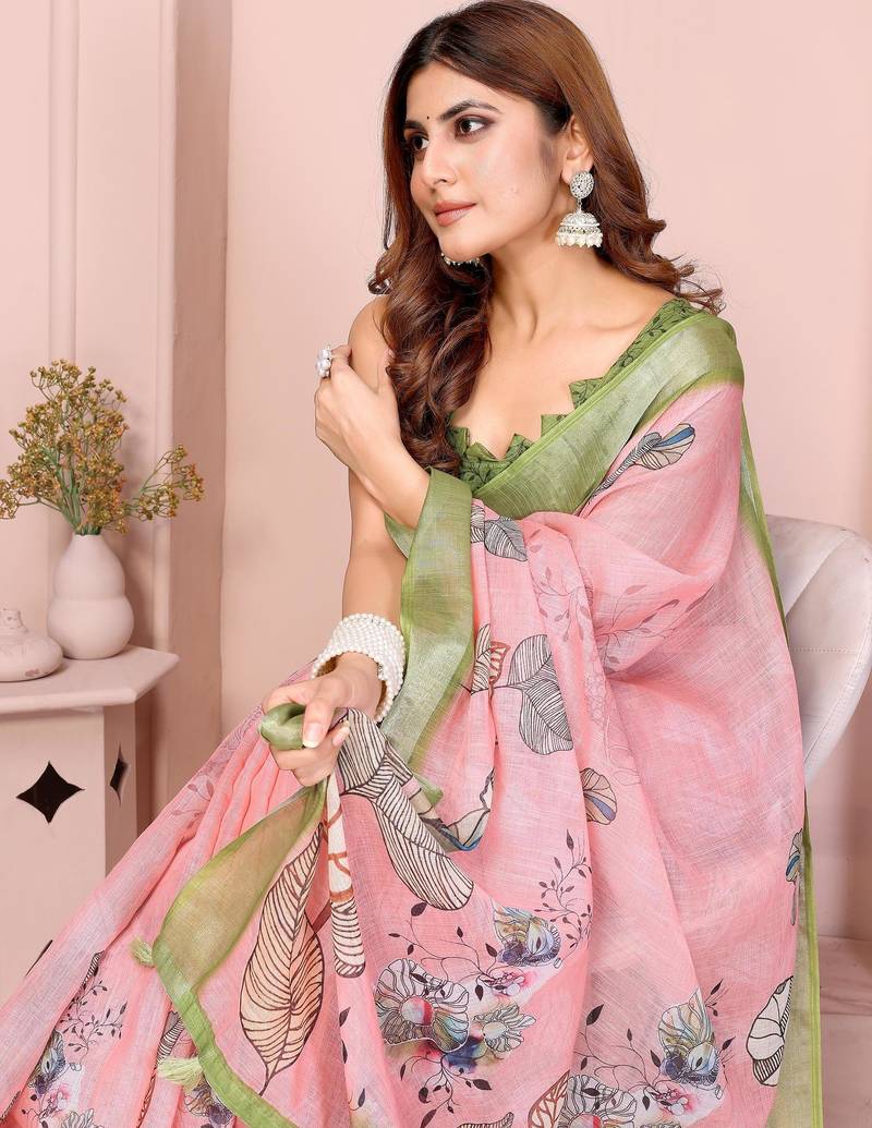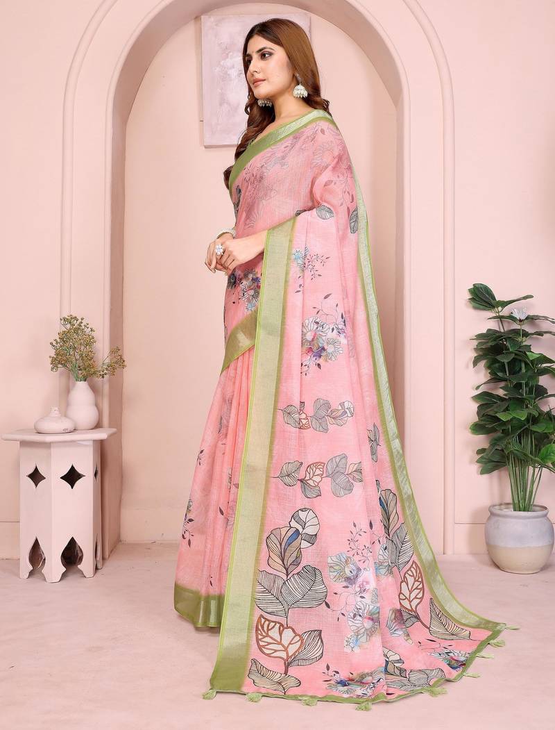 Product Name | Light Orange Printed Designer Pallu Linen Saree | |