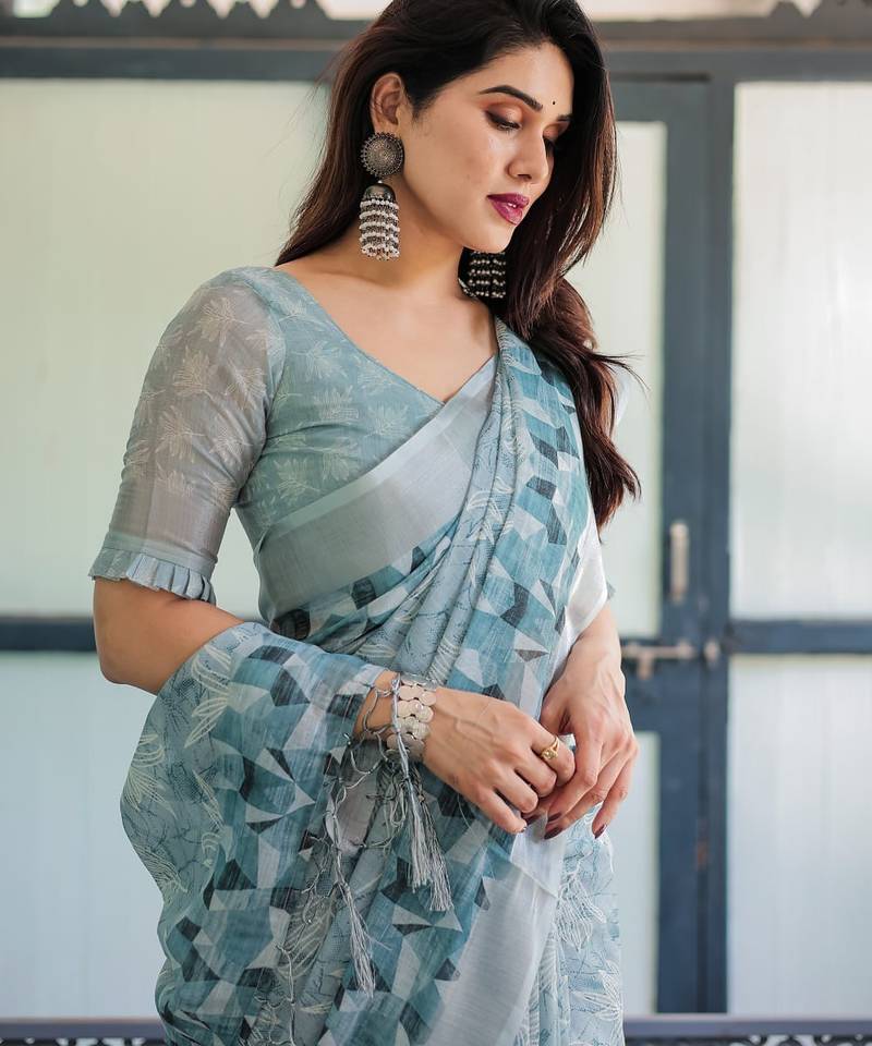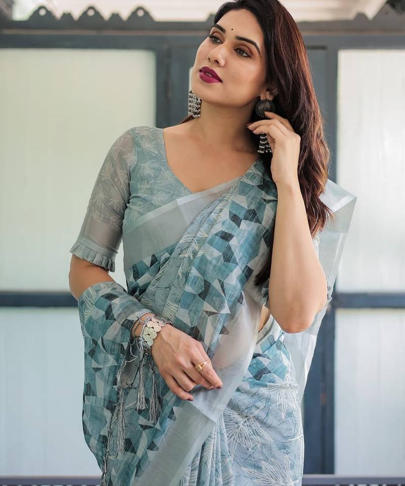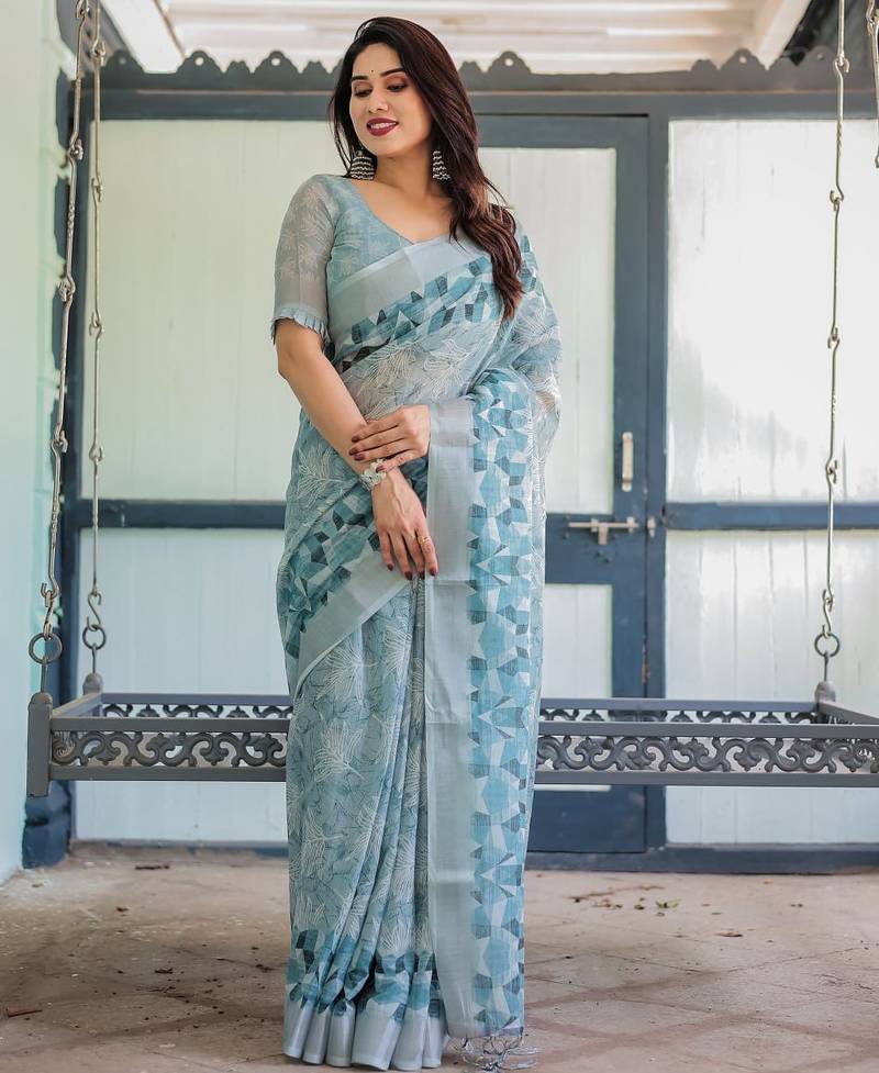 | Product Name | Light Sky Blue Printed Art Silk Designer Pallu Saree | |