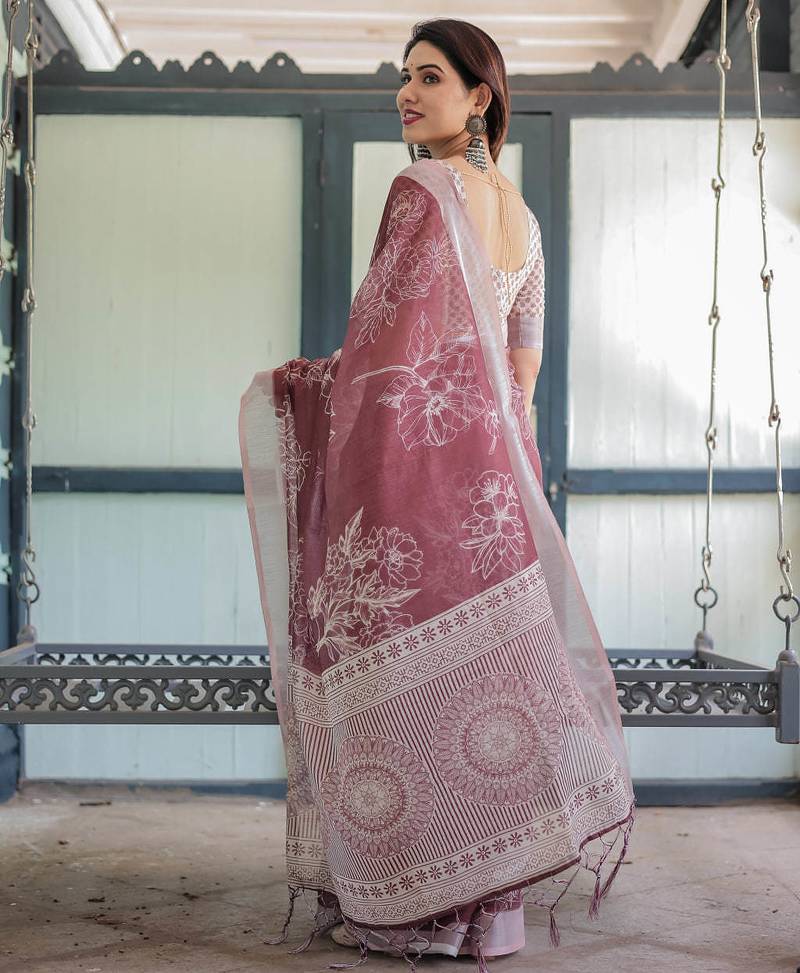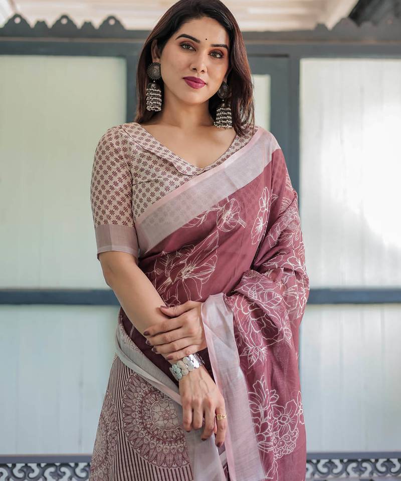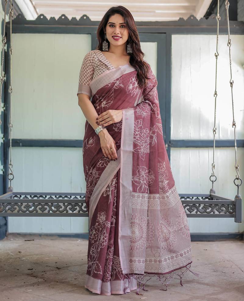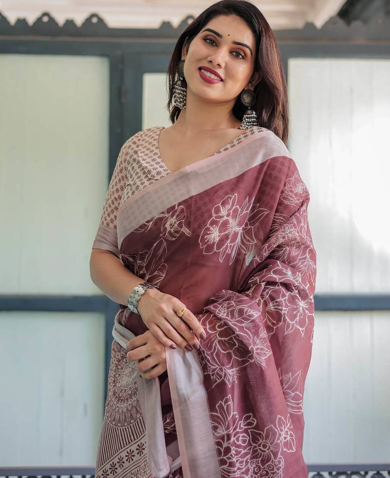 Maroon printed art silk designer pallu saree