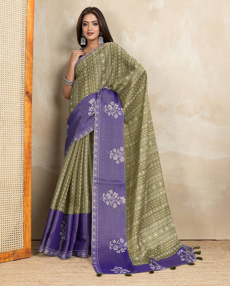 | • | Saree | : | Color- Mehendi / Fabric- Art Silk |